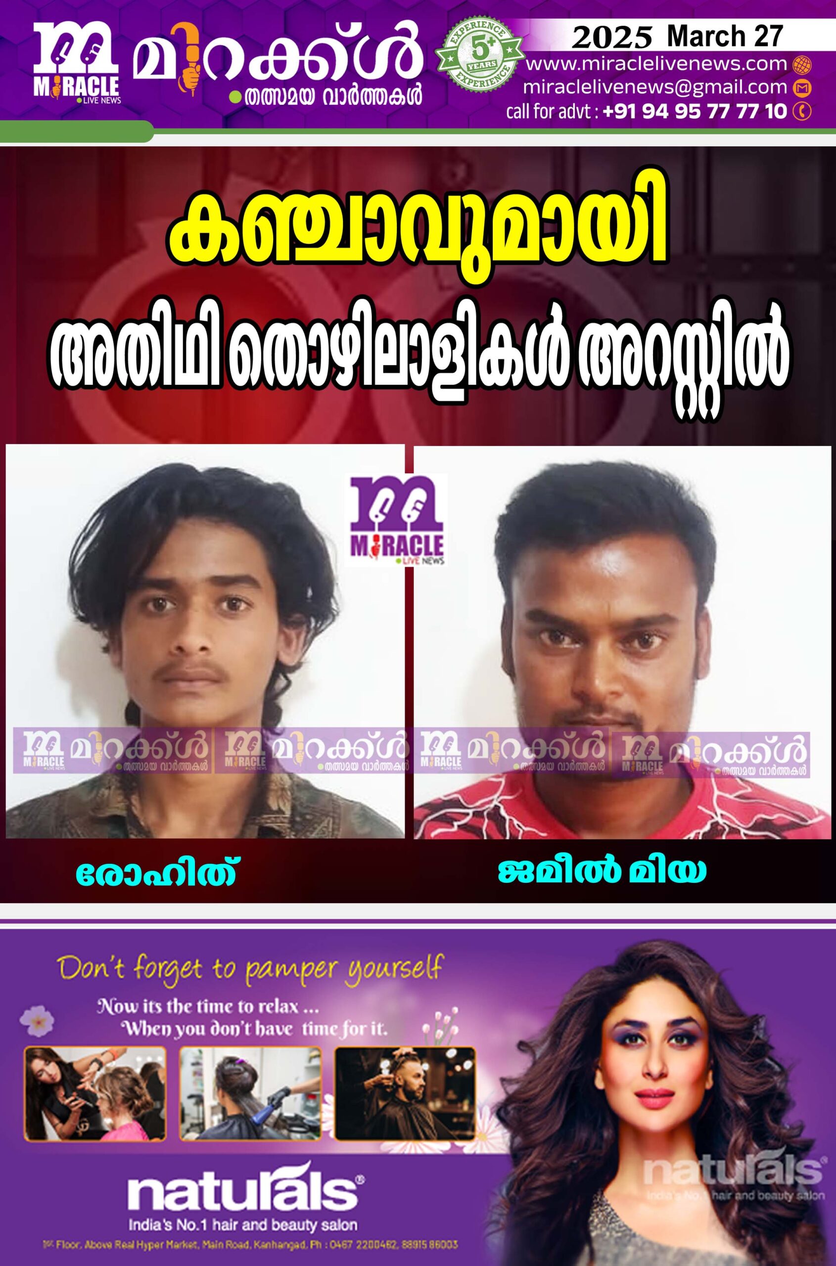 കാഞ്ഞങ്ങാട് : കഞ്ചാവുമായി രണ്ട് അതിഥി തൊഴിലാളികള് അറസ്റ്റില്. ബീഹാര് സ്വദേശികളായ രോഹിത് (20),