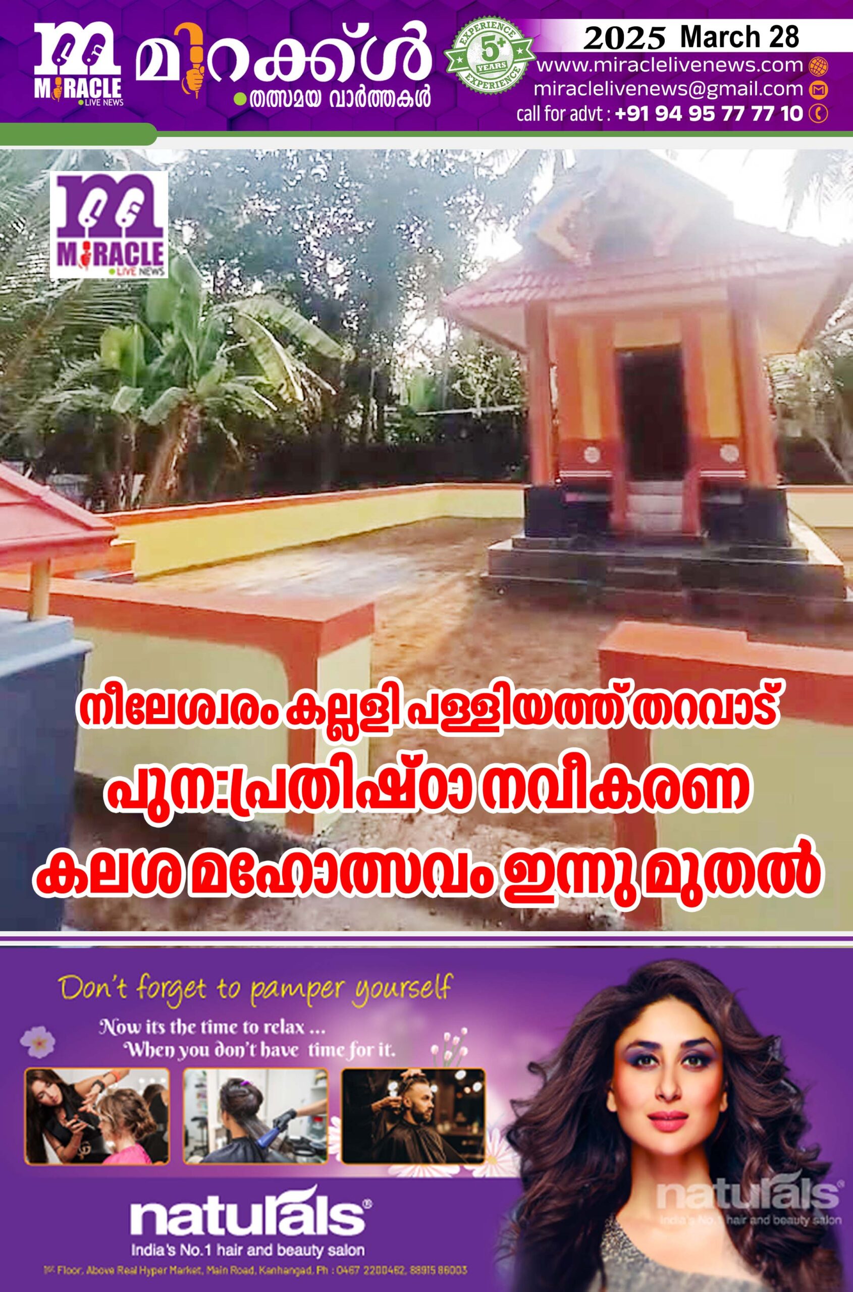 നീലേശ്വരം കല്ലളി പള്ളിയത്ത് തറവാട് പുന:പ്രതിഷ്ഠാ നവീകരണ കലശ മഹോത്സവം ഇന്നു മുതല്