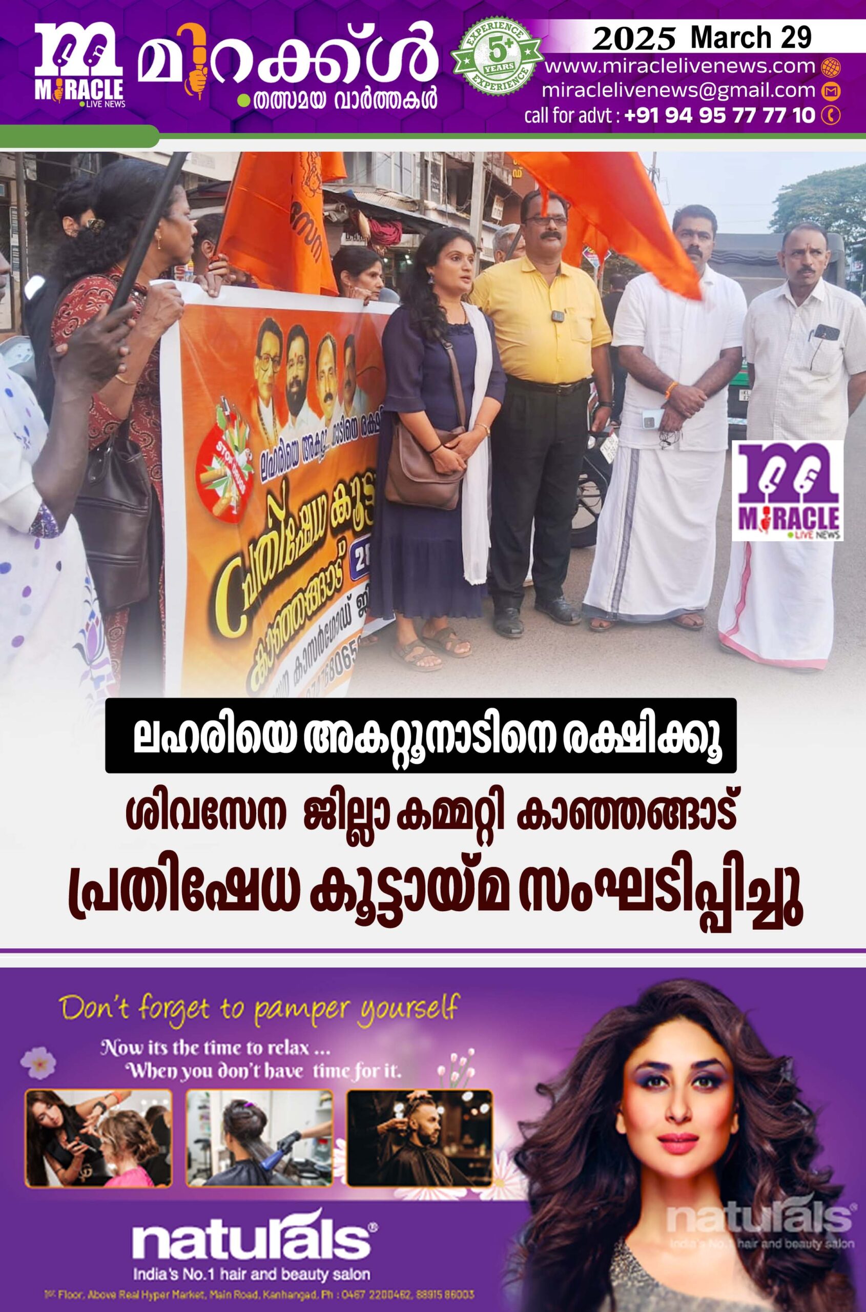 ലഹരിയെ അകറ്റൂ നാടിനെ രക്ഷിക്കൂ; ശിവസേന ജില്ലാകമ്മറ്റി കാഞ്ഞങ്ങാട് പ്രതിഷേധ കൂട്ടായ്മ സംഘടിപ്പിച്ചു