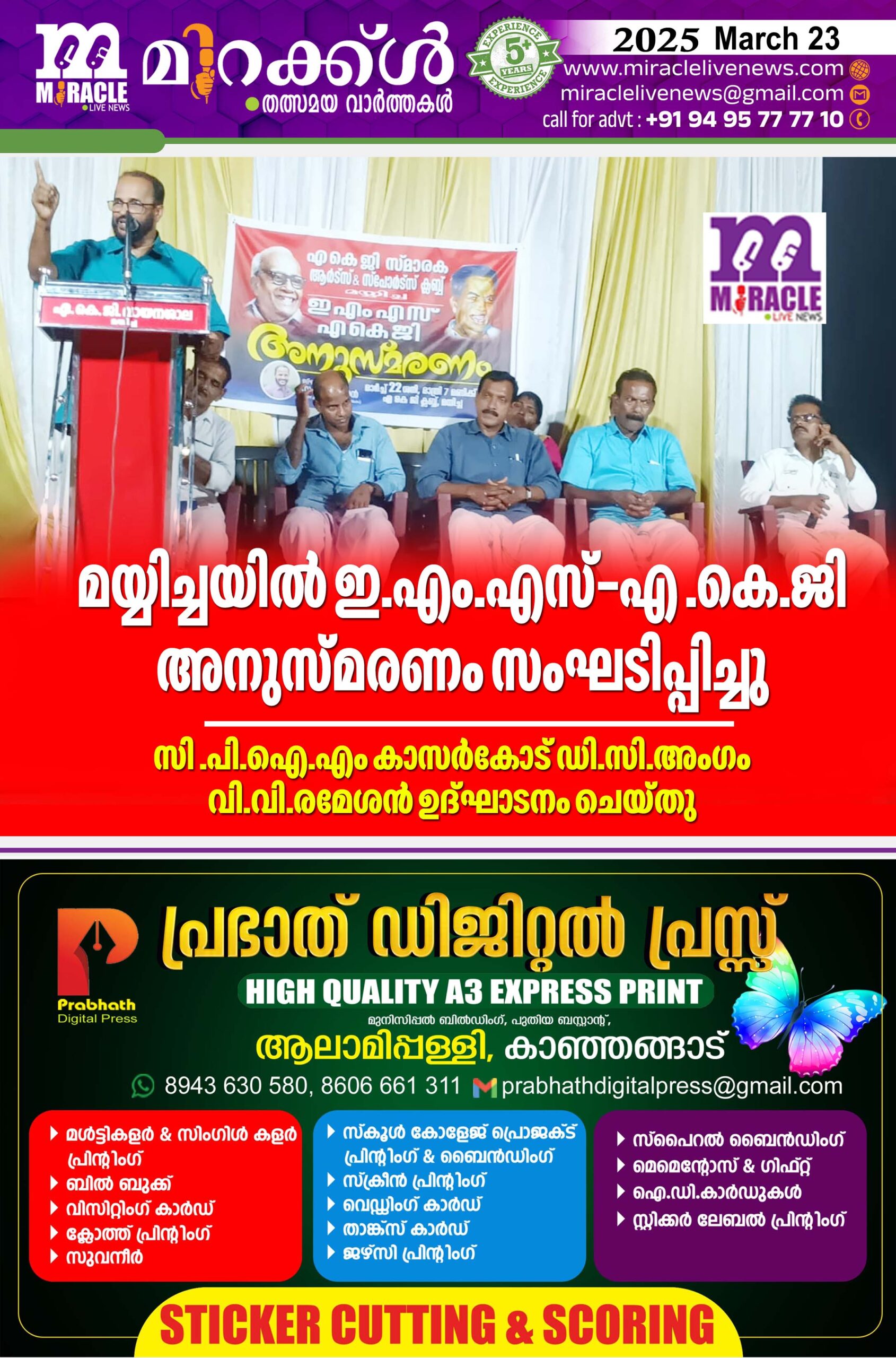 മയ്യിച്ചയില് ഇ.എം.എസ്.എ .കെ.ജി അനുസ്മരണം സംഘടിപ്പിച്ചു; സി .പി.ഐ.എം കാസര്കോട് ഡി.സി.അംഗം വി.വി.രമേശന് ഉദ്ഘാടനം ചെയ്തു