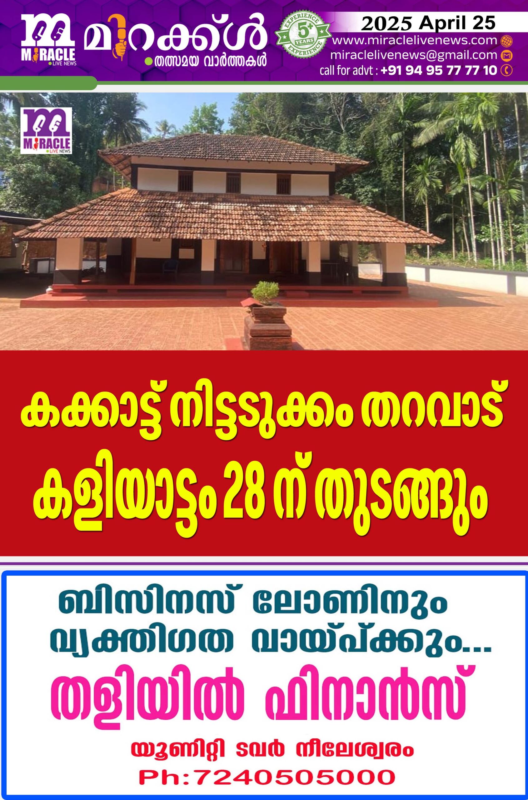 കക്കാട്ട് നിട്ടടുക്കം തറവാട് കളിയാട്ടം 28 ന് തുടങ്ങും