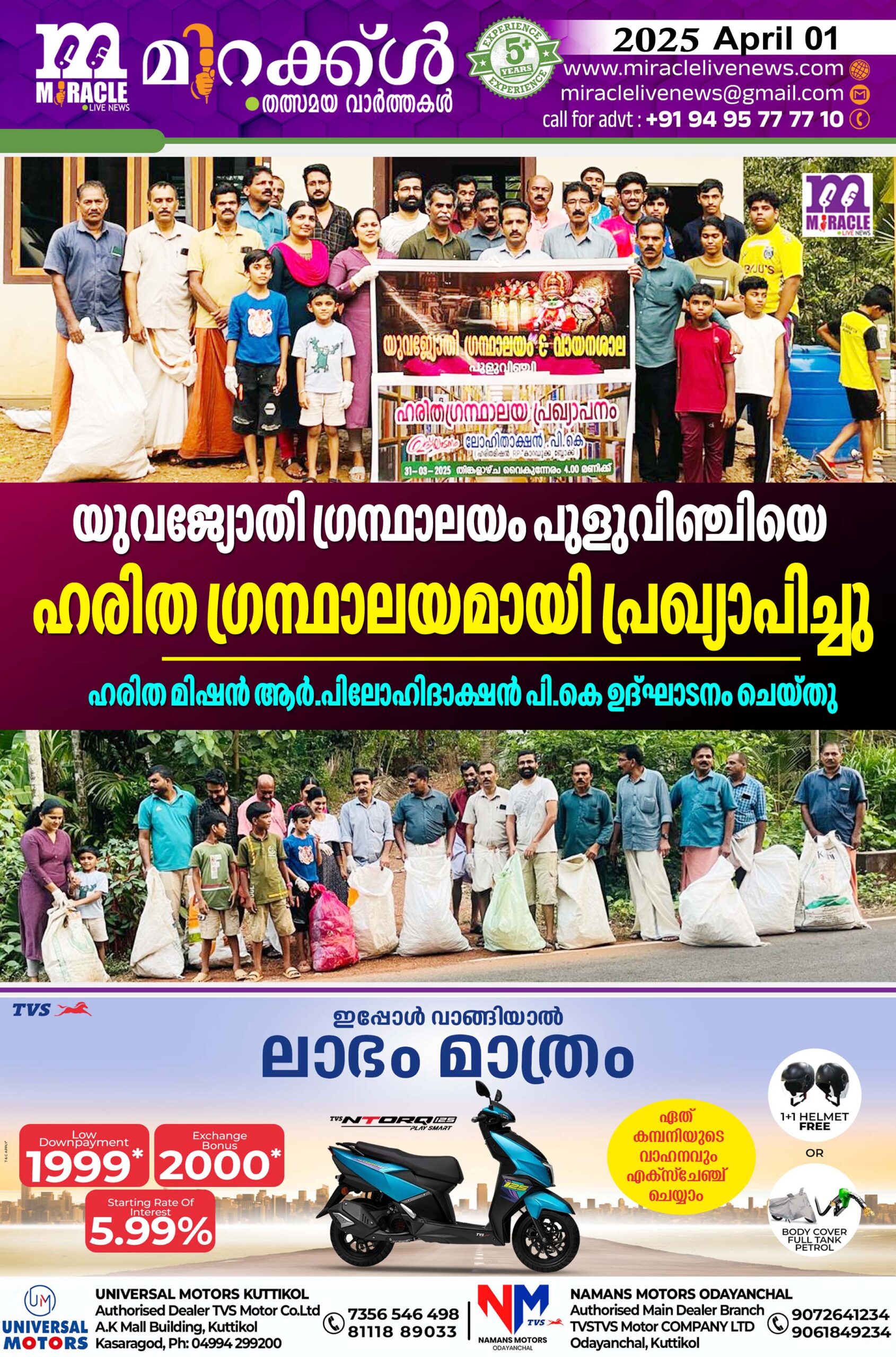 പുളുവിഞ്ചി :- മാലിന്യ മുക്ത നവകേരളം ക്യാമ്പയിന്റെ ഭാഗമായി യുവജ്യോതി ഗ്രന്ഥാലയം പുളുവിഞ്ചി യെ ഹരിത ഗ്രന്ഥാലയമായി പ്രഖ്യാപിച്ചു. ഹരിത മിഷന് ആര്.പി.യും സിനിമാനടനുമായ ലോഹിതാക്ഷന് പി.കെ ഉദ്ഘാടനം ചെയ്തു.