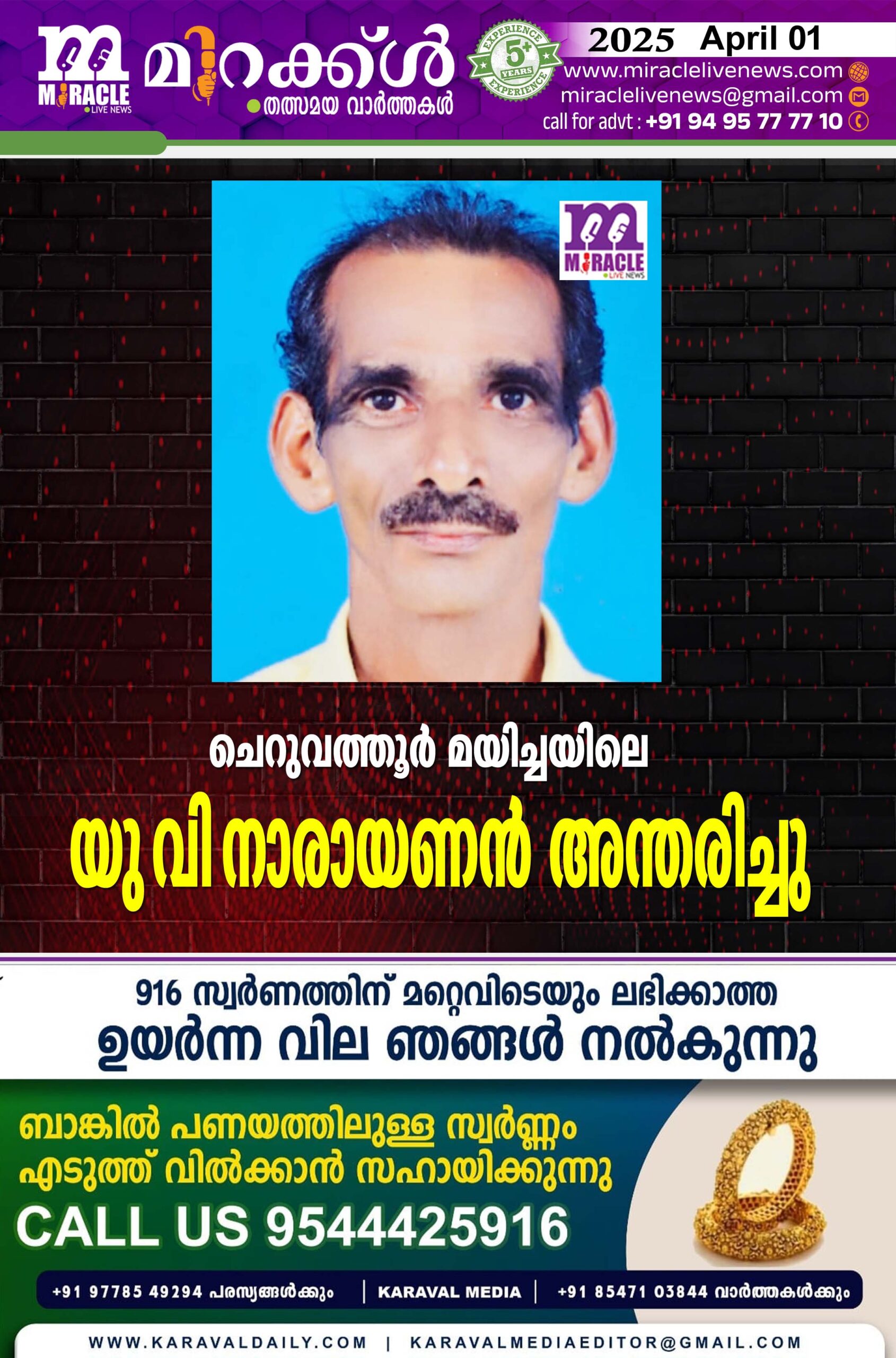 ചെറുവത്തൂര് മയിച്ച യിലെ യു വി നാരായണന് അന്തരിച്ചു
