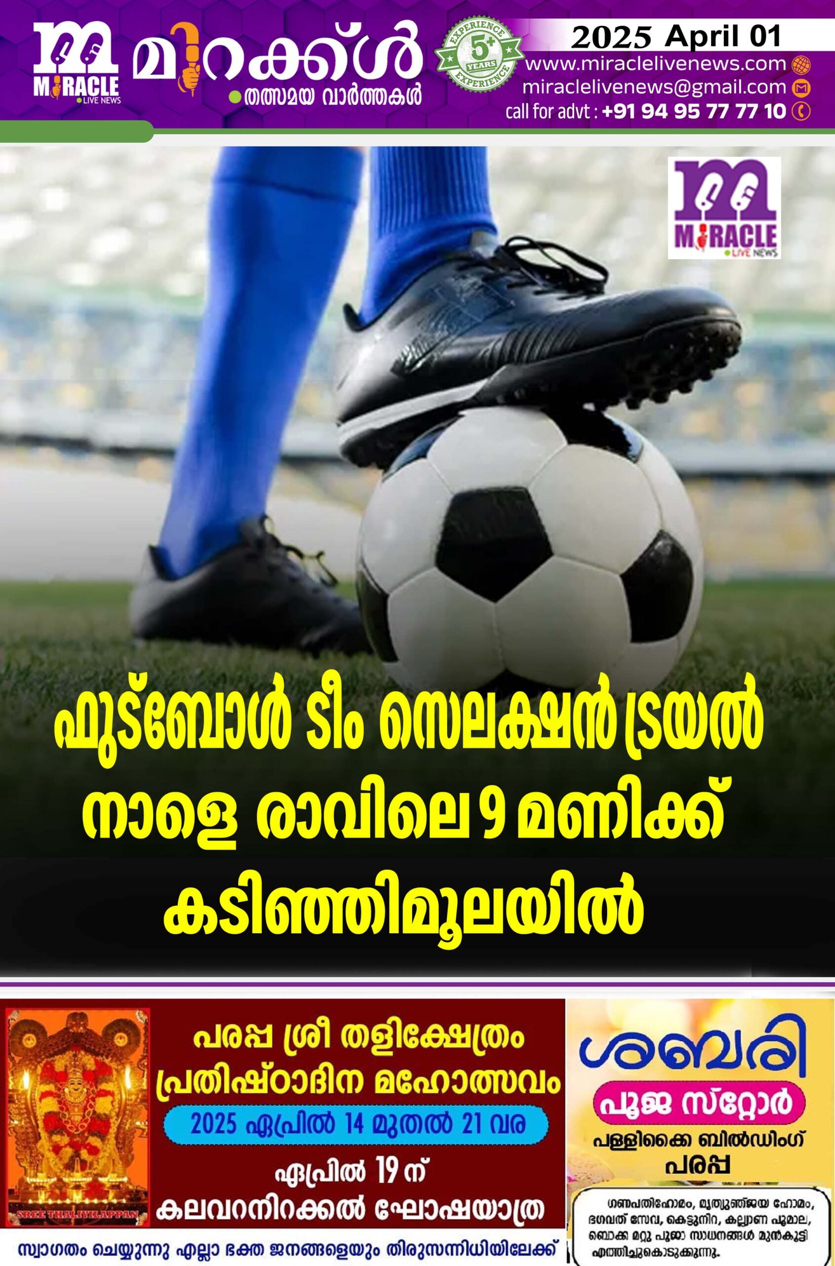 ഫുട്‌ബോള്‍ ടീം സെലക്ഷന്‍ ട്രയല്‍ നാളെ രാവിലെ 9 മണിക്ക് കടിഞ്ഞിമൂലയില്‍
