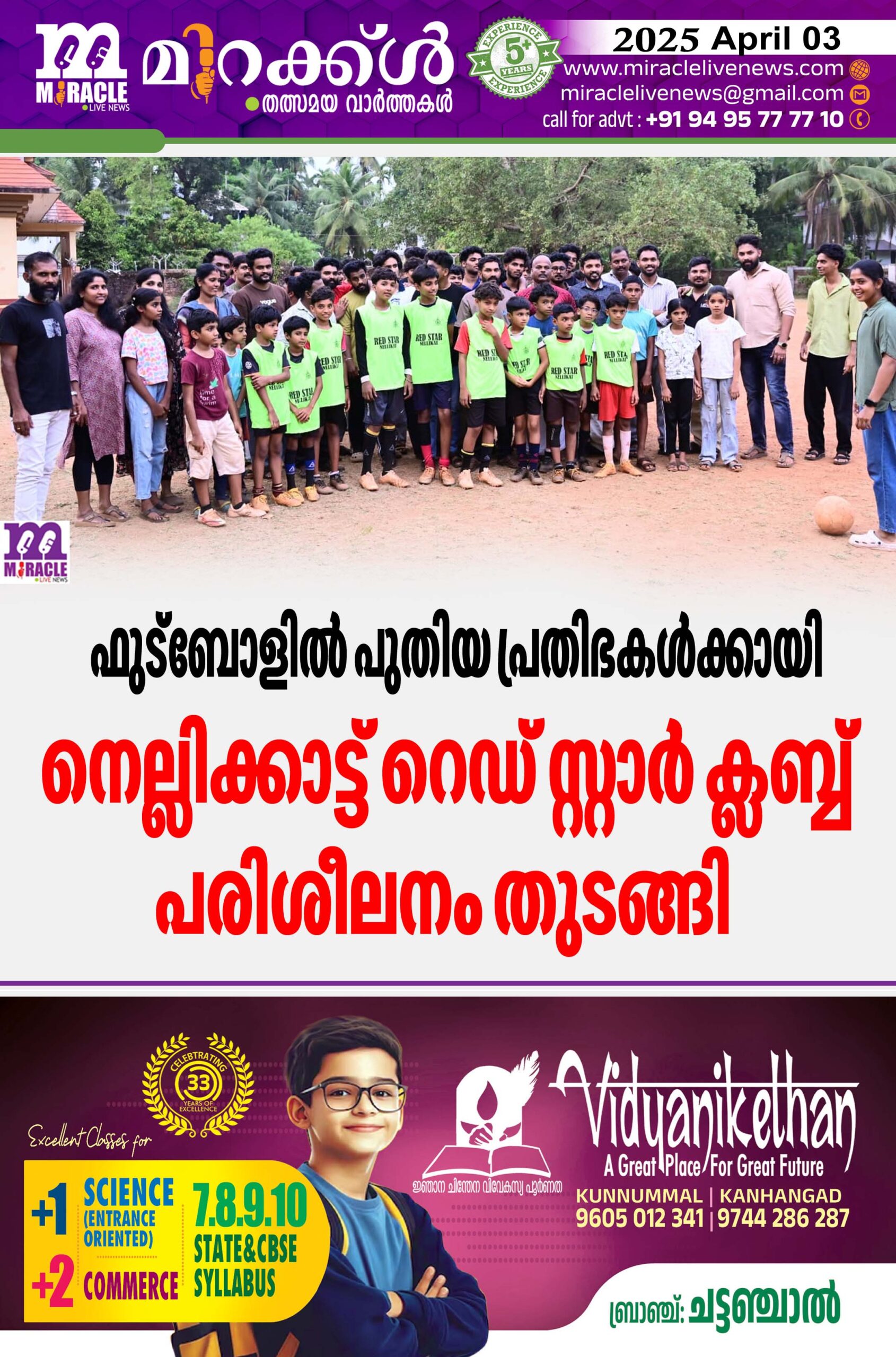 ഫുട്ബോളില് പുതിയ പ്രതിഭകള്ക്കായി നെല്ലിക്കാട്ട് റെഡ് സ്റ്റാര് ക്ലബ്ബ് പരിശീലനം തുടങ്ങി