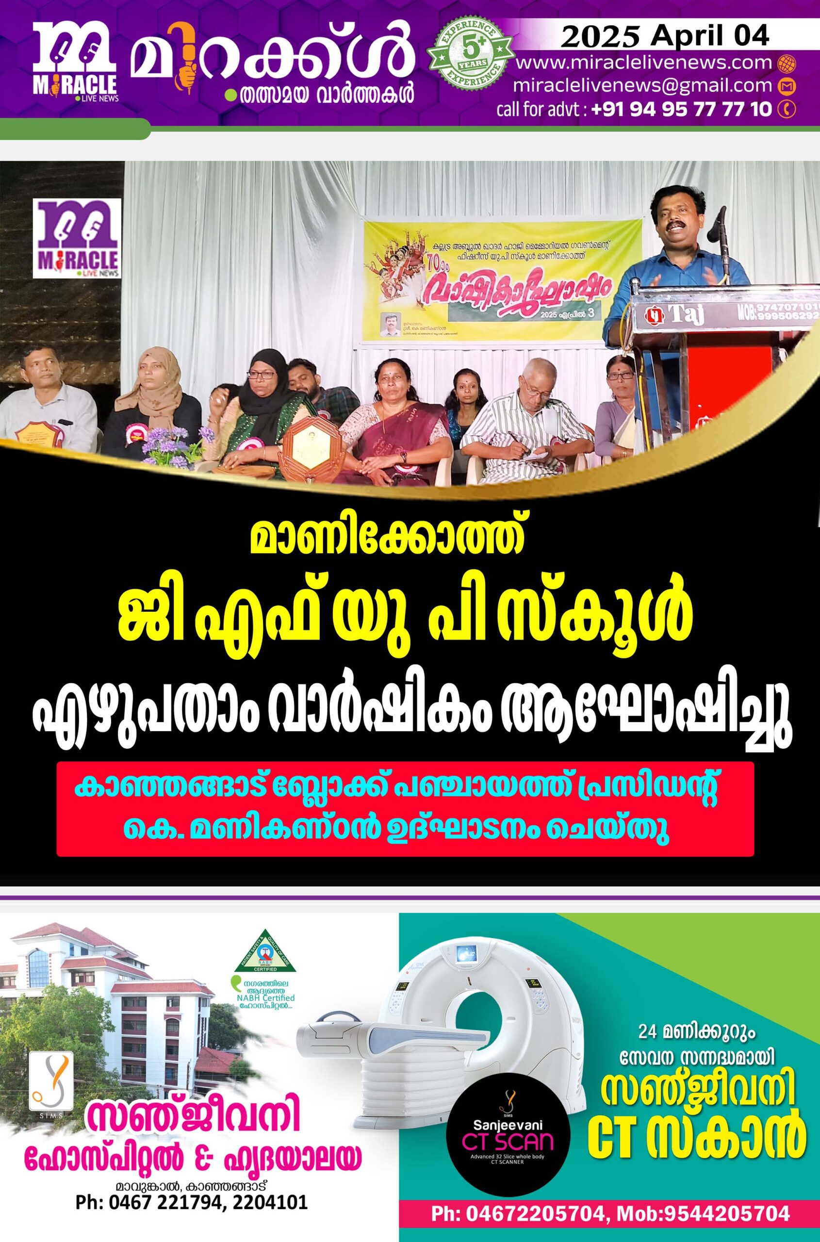 മാണിക്കോത്ത് ജി എഫ് യു പി സ്കൂള് എഴുപതാം വാര്ഷികം ആഘോഷിച്ചു; കാഞ്ഞങ്ങാട് ബ്ലോക്ക് പഞ്ചായത്ത് പ്രസിഡന്റ് കെ. മണികണ്ഠന് ഉദ്ഘാടനം ചെയ്തു
