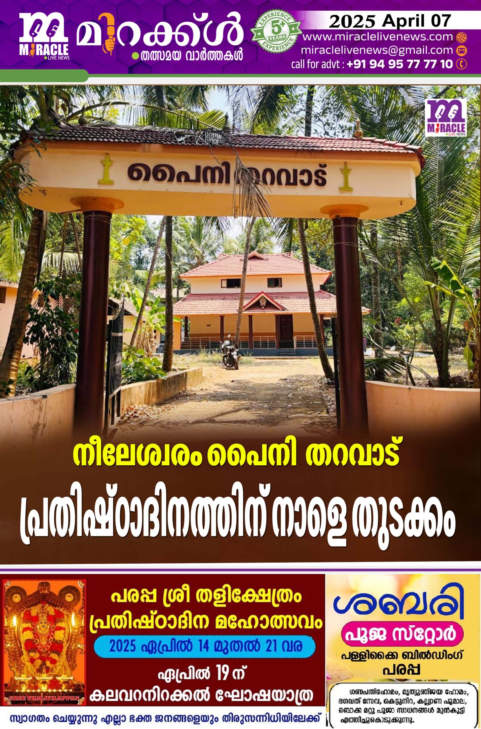 നീലേശ്വരം പൈനി തറവാട് പ്രതിഷ്ഠാദിനത്തിന് നാളെ തുടക്കം