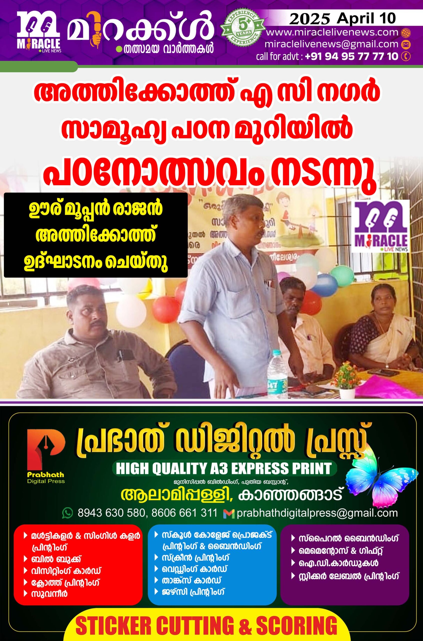 അത്തിക്കോത്ത് എ സി നഗര് സാമൂഹ്യ പഠന മുറിയില് പഠനോത്സവം നടന്നു; ഊര് മൂപ്പന് രാജന് അത്തിക്കോത്ത് ഉദ്ഘാടനം ചെയ്തു