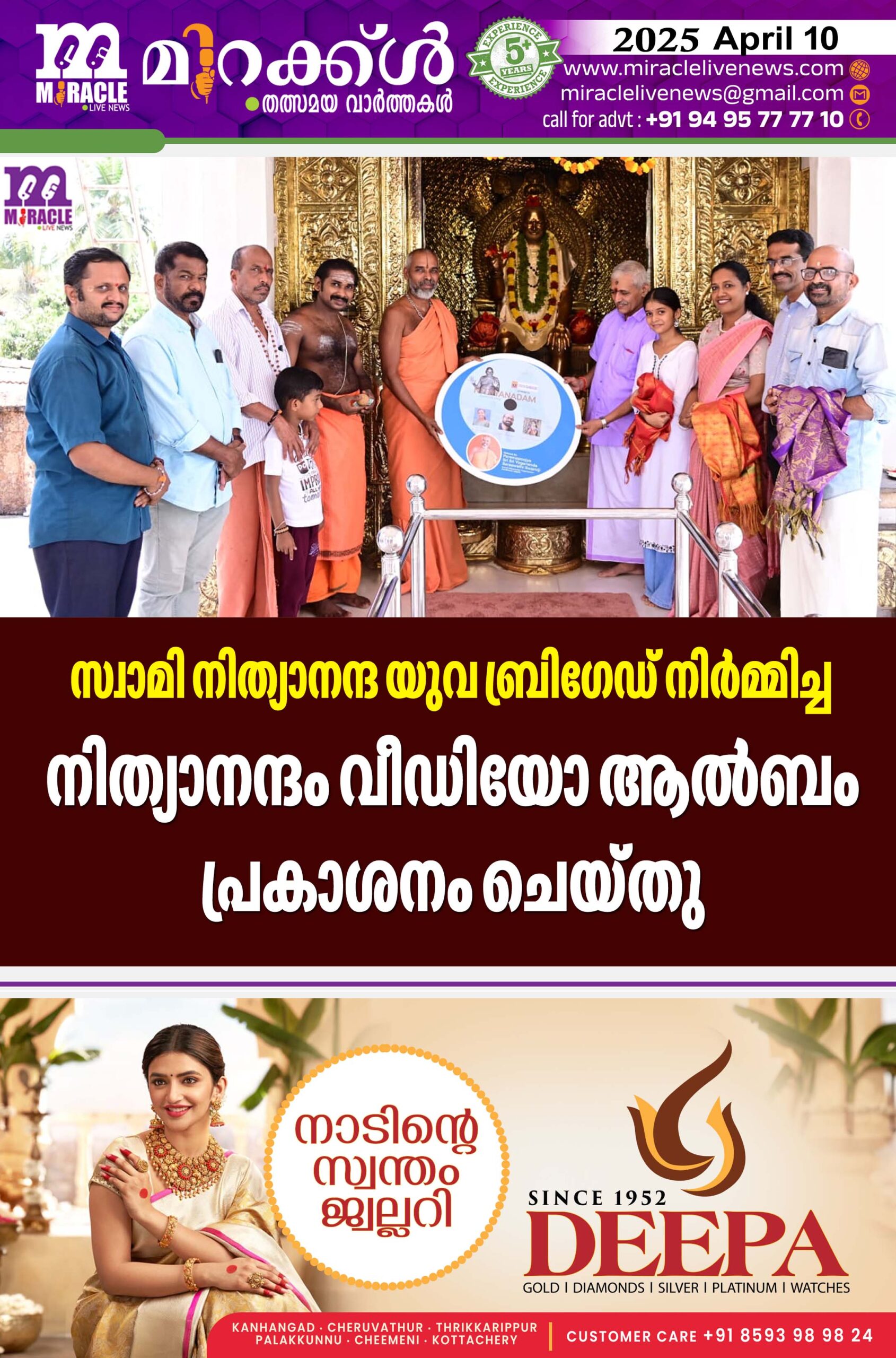 സ്വാമി നിത്യാനന്ദ യുവ ബ്രിഗേഡ് നിര്‍മ്മിച്ച നിത്യാനന്ദം വീഡിയോ ആല്‍ബം പ്രകാശനം ചെയ്തു