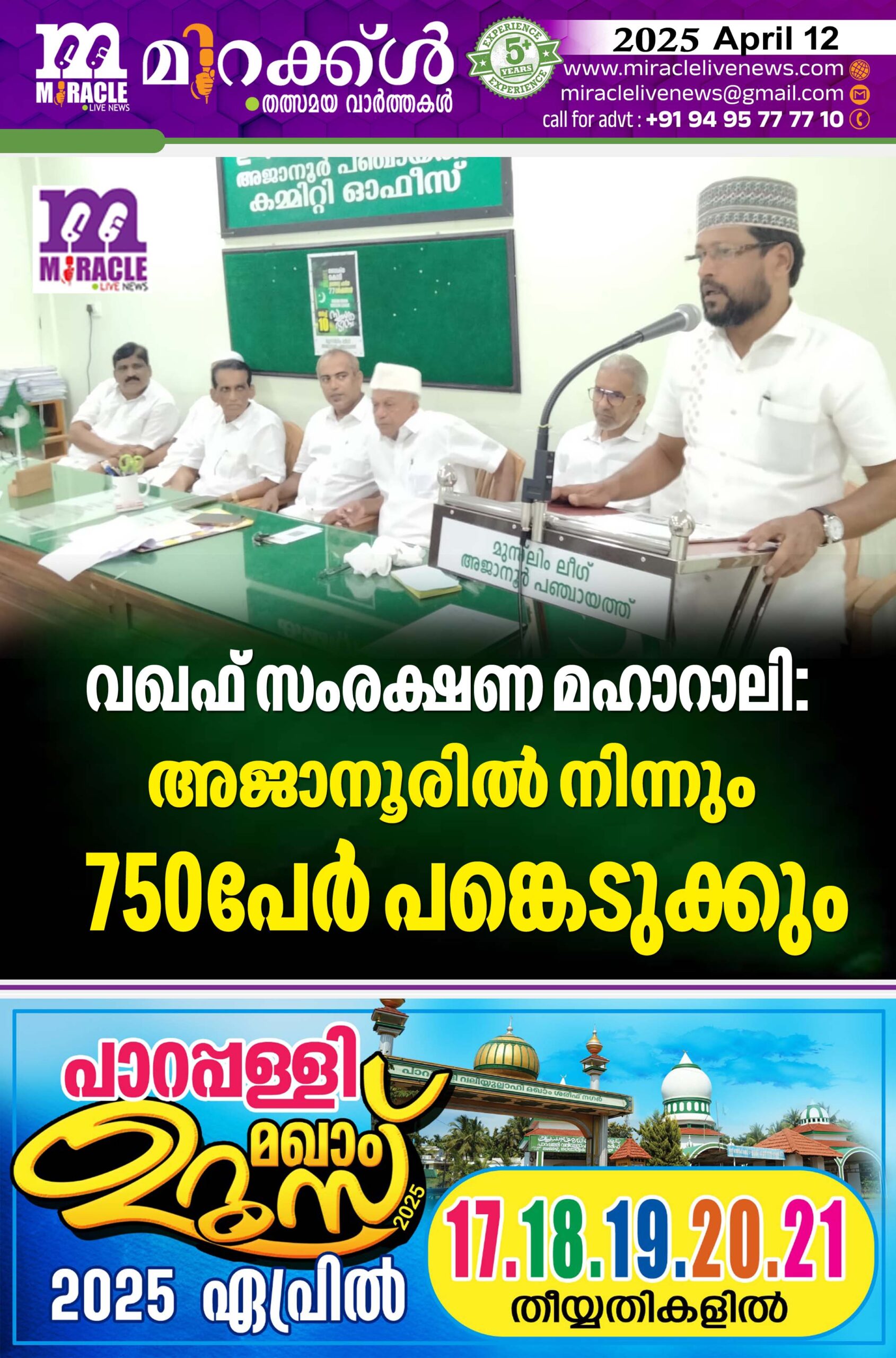 വഖഫ് സംരക്ഷണ മഹാറാലി അജാനൂരില് നിന്നും 750പേര് പങ്കെടുക്കും