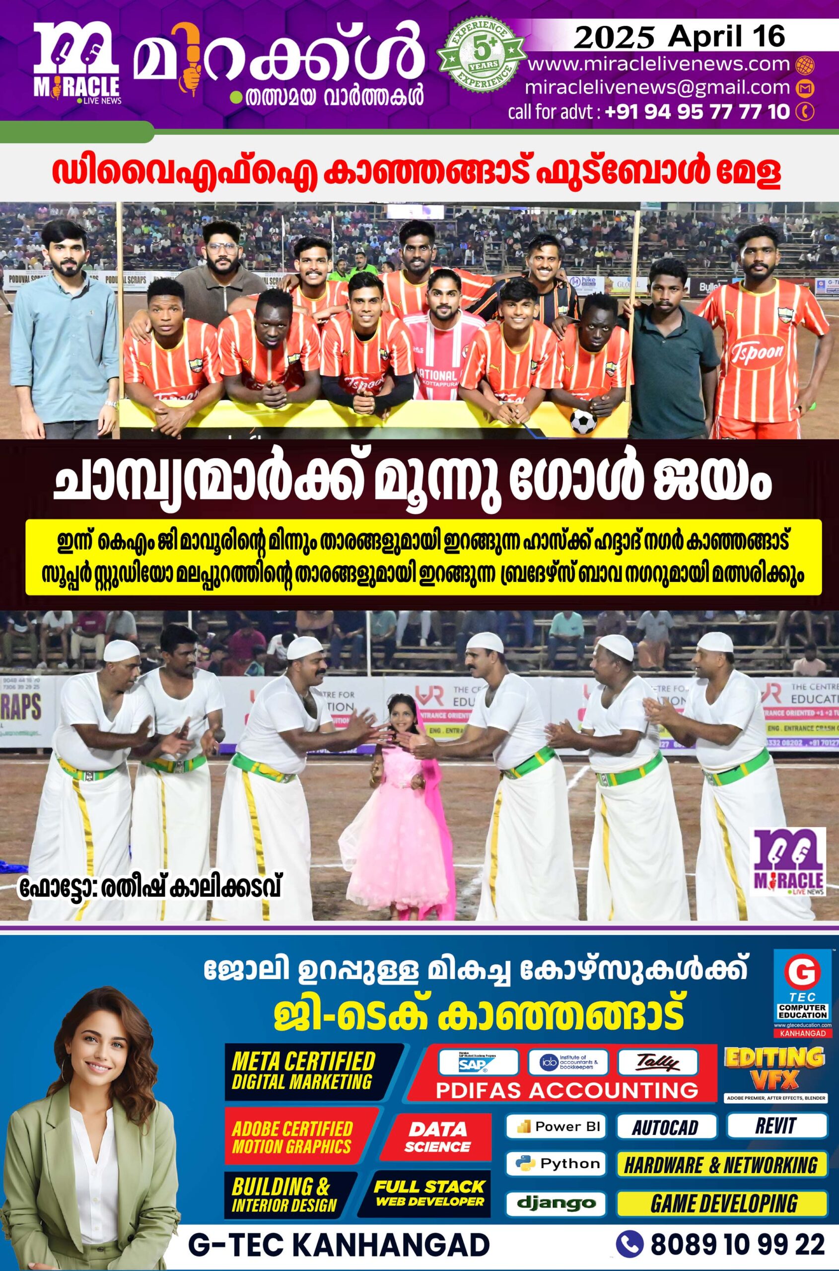 ഡിവൈഎഫ്‌ഐ കാഞ്ഞങ്ങാട് ഫുട്‌ബോള്‍ മേള; ചാമ്പ്യന്മാര്‍ക്ക് മൂന്നു ഗോള്‍ ജയം; ഇന്ന് കെഎം ജി മാവൂരിന്റെ മിന്നും താരങ്ങളുമായി ഇറങ്ങുന്ന ഹാസ്‌ക്ക് ഹദ്ദാദ് നഗര്‍ കാഞ്ഞങ്ങാട് സൂപ്പര്‍ സ്റ്റുഡിയോ മലപ്പുറത്തിന്റെ താരങ്ങളുമായി ഇറങ്ങുന്ന ബ്രദേഴ്‌സ് ബാവ നഗറുമായി മത്സരിക്കും