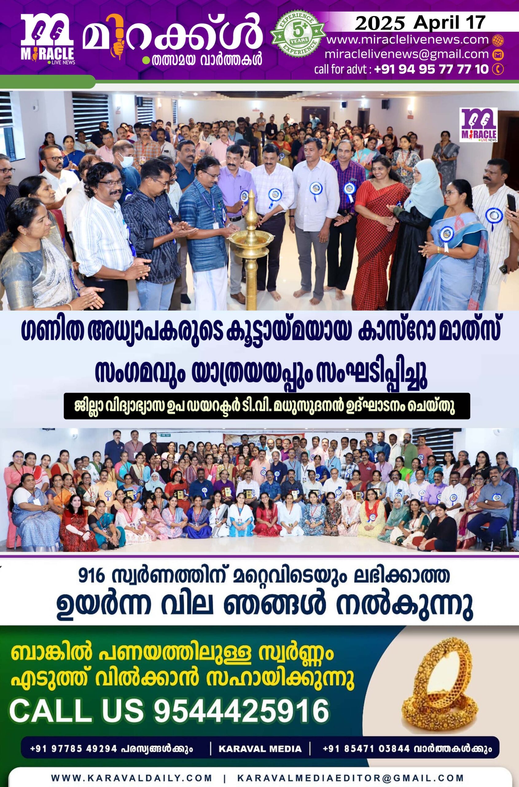 ഗണിത അധ്യാപകരുടെ കൂട്ടായ്മയായ ‘കാസ്റോ മാത് സ് സംഗമവും യാത്രയയപ്പും സംഘടിപ്പിച്ചു; ജില്ലാ വിദ്യാഭ്യാസ ഉപ ഡയറക്ടര് ടി.വി. മധുസുദനന് ഉദ്ഘാടനം ചെയ്തു