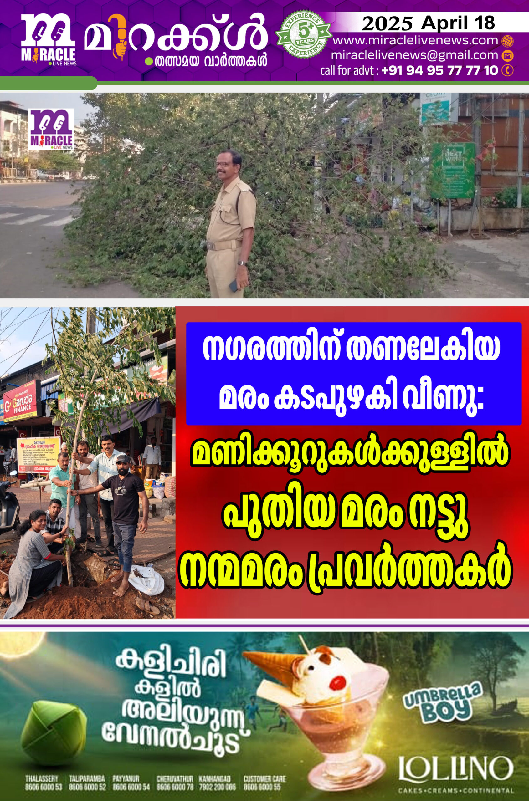 നഗരത്തിന് തണലേകിയ മരം കടപുഴകി വീണു; മണിക്കൂറുകളുകള്ക്കുള്ളില് പുതിയമരം നട്ടു നന്മമരം പ്രവര്ത്തകര്