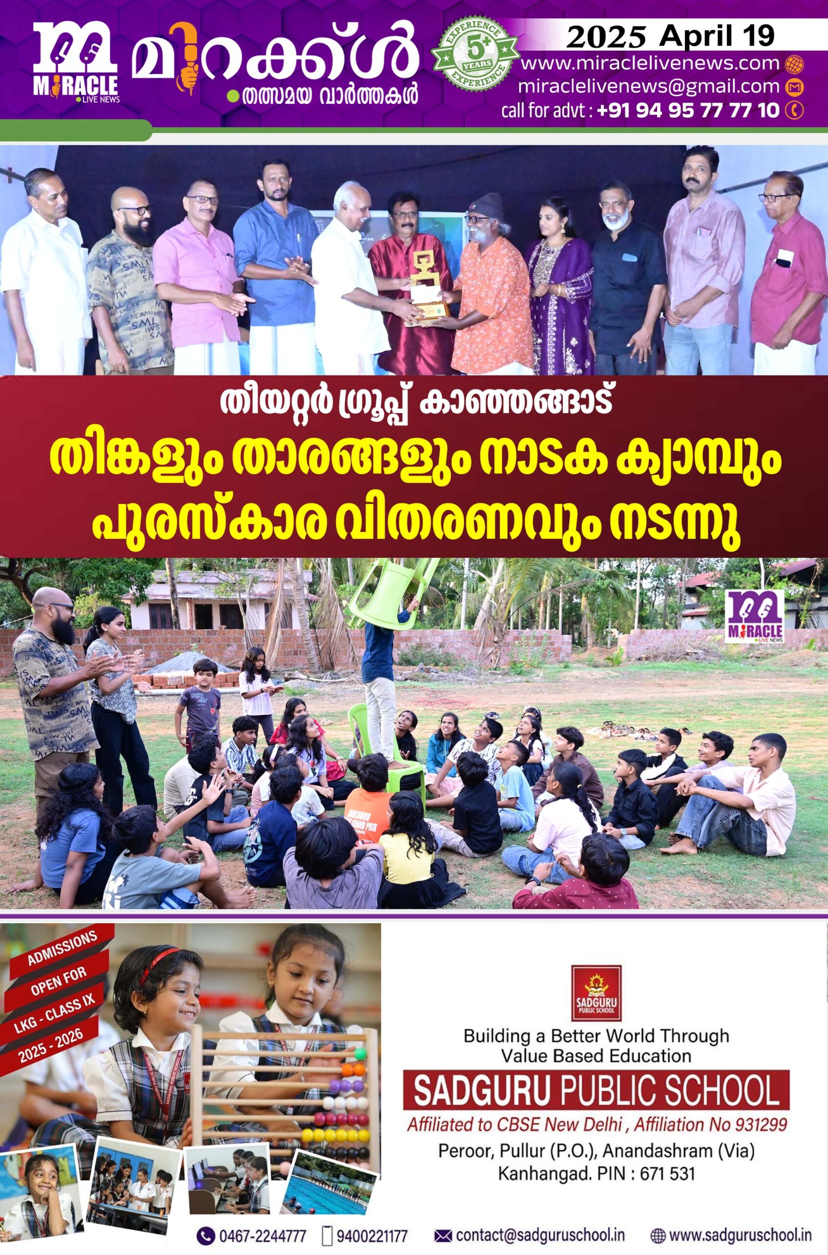തീയറ്റര് ഗ്രൂപ്പ് കാഞ്ഞങ്ങാട് തിങ്കളും താരങ്ങളും നാടക ക്യാമ്പും പുരസ്കാര വിതരണവും നടന്നു