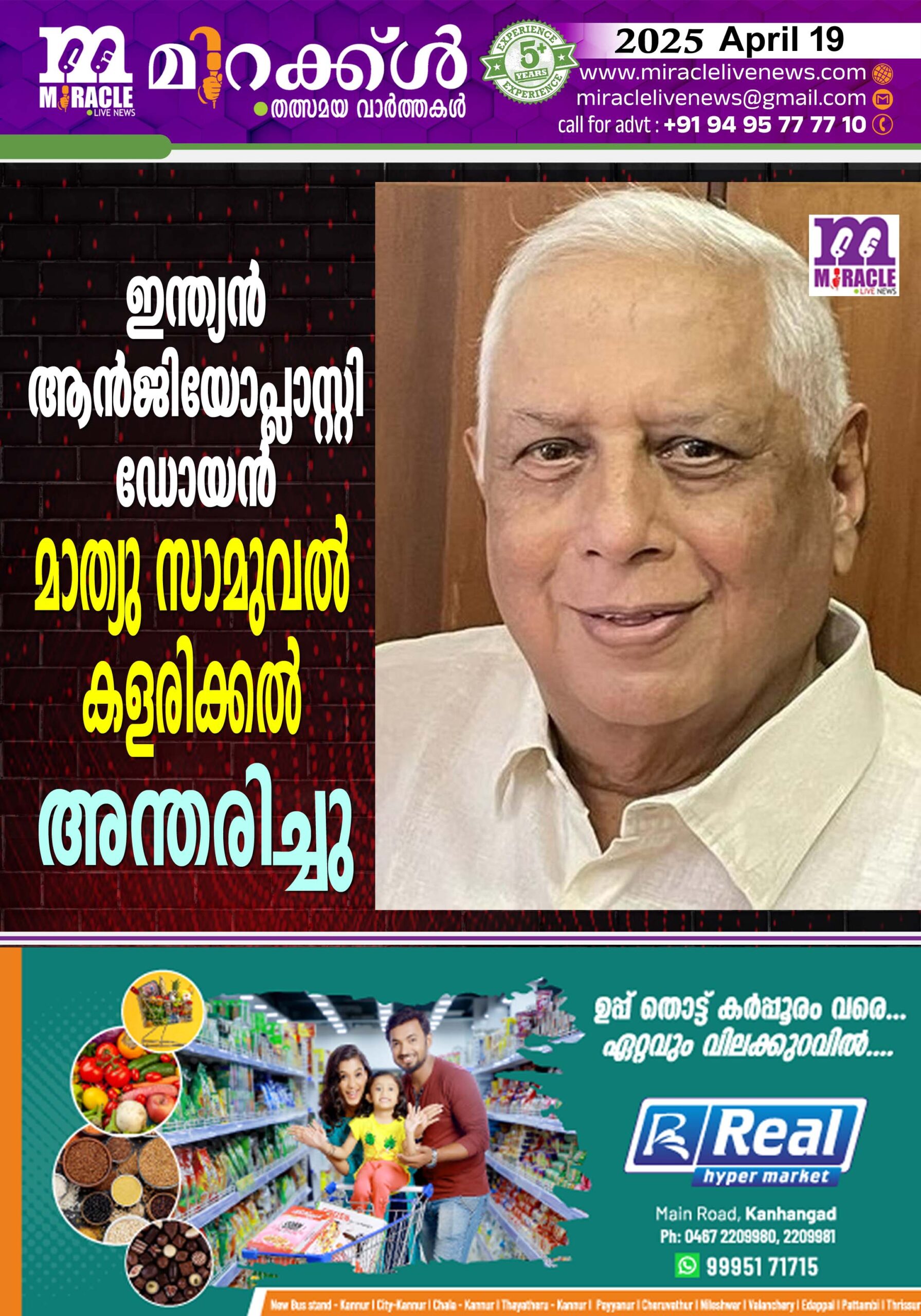 ഇന്ത്യന് ആന്ജിയോപ്ലാസ്റ്റി ഡോയന് മാത്യു സാമുവല് കളരിക്കല് അന്തരിച്ചു