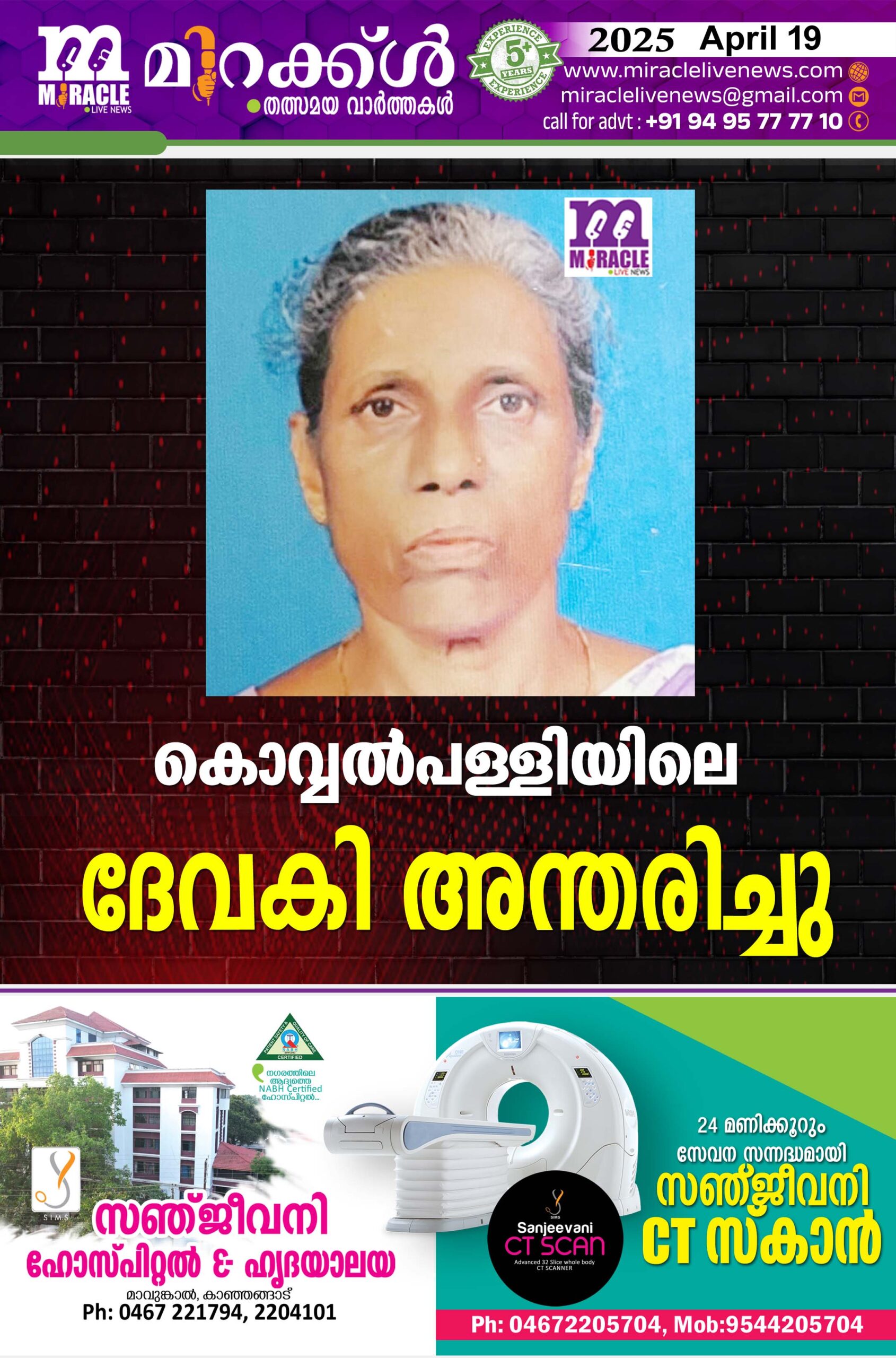 കാഞ്ഞങ്ങാട് :കൊവ്വല്പള്ളിയിലെ ദേവകി അന്തരിച്ചു. ഭാര്ത്താവ് പരേതനായ അപ്പകുഞ്ഞി. മക്കള്: വിജയന്, സുകുമാരന്, ചന്ദ്രന്, വാസു, സദാശിവന്. മരുമക്കള്: ഉഷ, സുമ, പ്രീതി,രജിത,ഷൈനി.