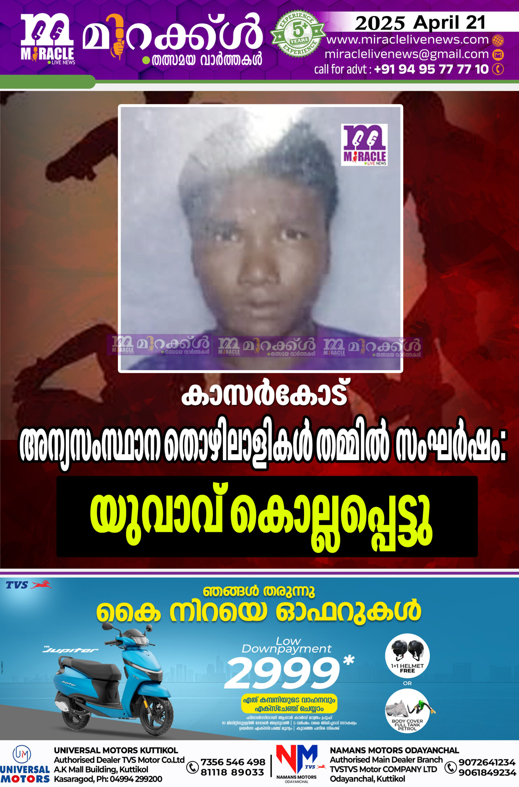 കാസര്കോട് അന്യസംസ്ഥാന തൊഴിലാളികള് തമ്മില് സംഘര്ഷം: യുവാവ് കൊല്ലപ്പെട്ടു