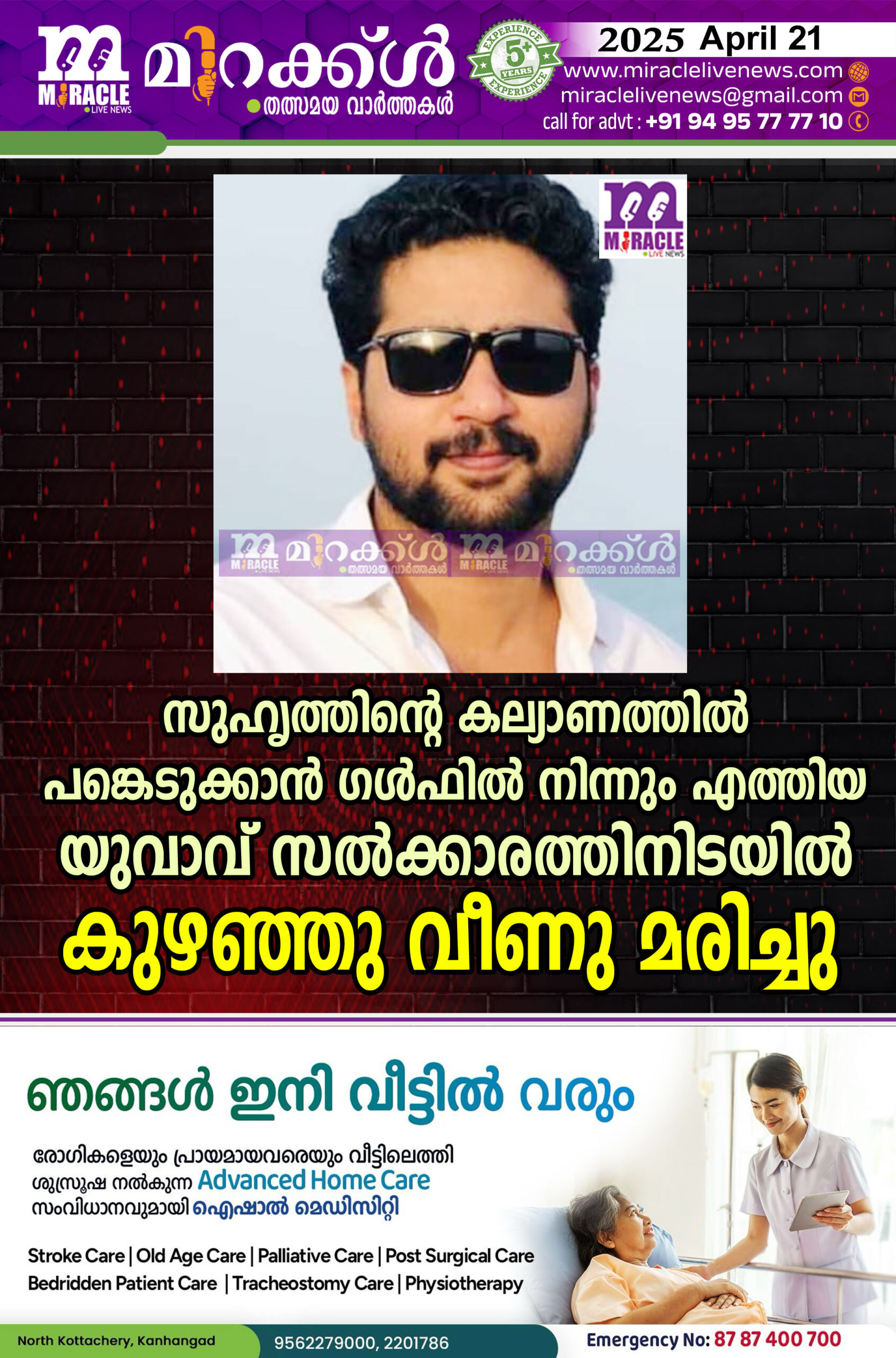 സുഹൃത്തിന്റെ കല്യാണത്തില്‍ പങ്കെടുക്കാന്‍ ഗള്‍ഫില്‍ നിന്നും എത്തിയ യുവാവ് സല്‍ക്കാരത്തിനിടയില്‍ കുഴഞ്ഞു വീണു മരിച്ചു.