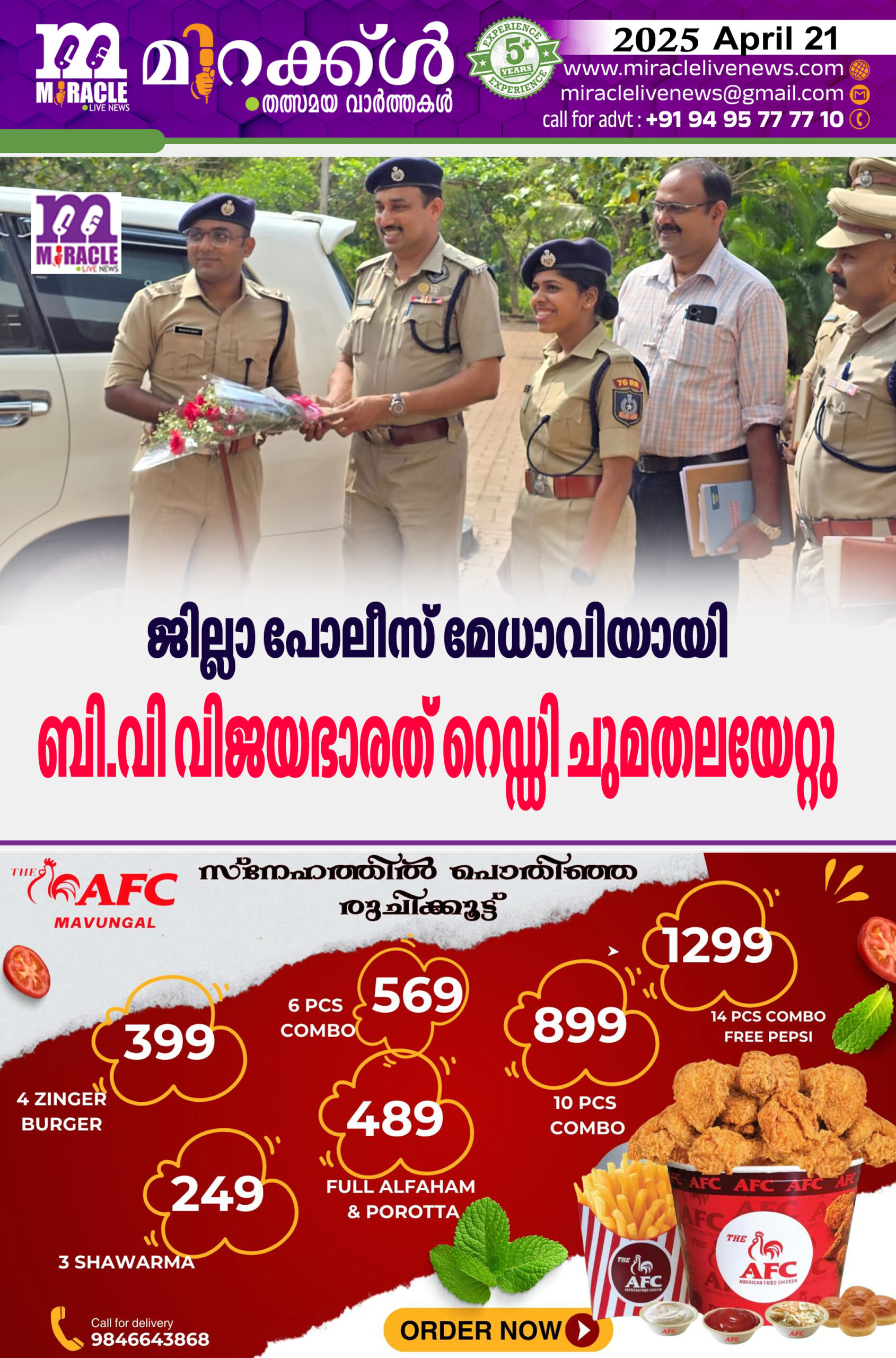 ജില്ലാ പോലീസ് മേധാവിയായി ബി.വി വിജയഭാരത് റെഡ്ഡി ചുമതലയേറ്റു.