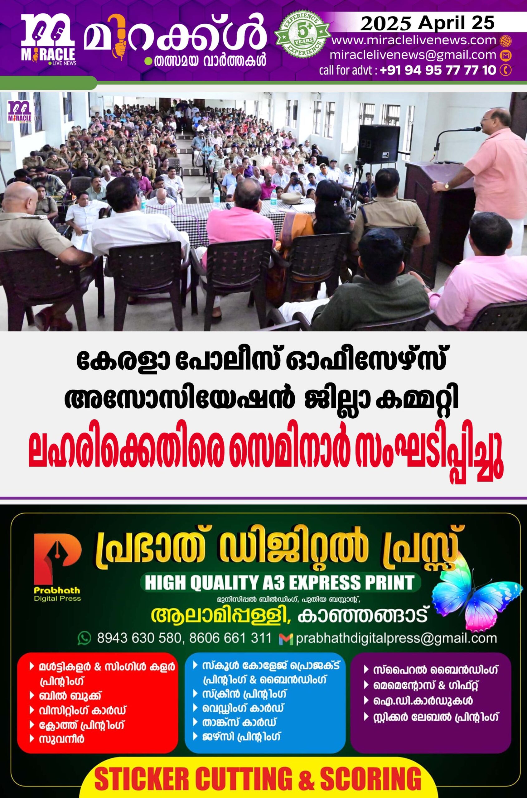 കേരളാ പോലീസ് ഓഫീസേഴ്‌സ് അസോസിയേഷന്‍ ജില്ലാ കമ്മറ്റി ലഹരിക്കെതിരെ സെമിനാര്‍ സംഘടിപ്പിച്ചു