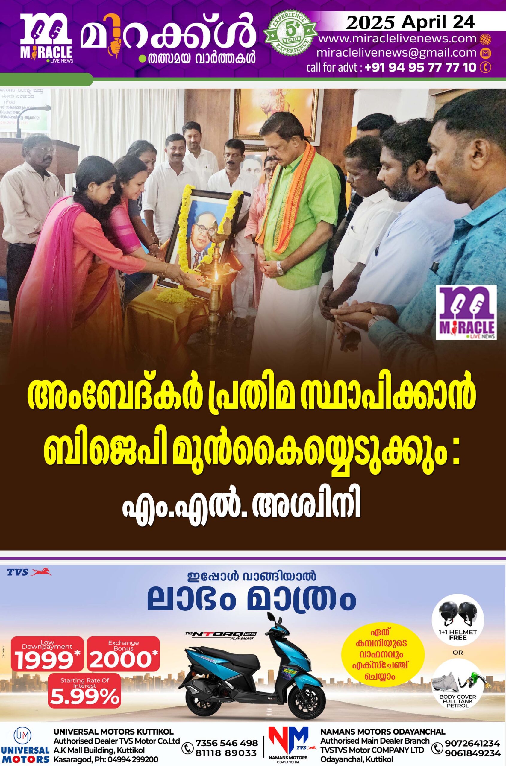 അംബേദ്കര്‍ പ്രതിമ സ്ഥാപിക്കാന്‍ ബിജെപി മുന്‍കൈയ്യെടുക്കും : എം.എല്‍. അശ്വിനി
