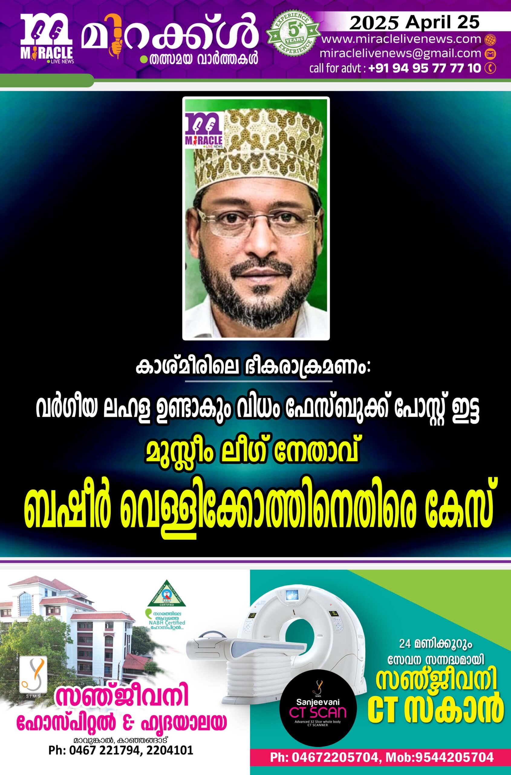 കാശ്മീരിലെ ഭീകരാക്രമണം: വര്ഗീയ ലഹള ഉണ്ടാകും വിധം ഫേസ്ബുക്ക് പോസ്റ്റ് ഇട്ട മുസ്ലീം ലീഗ് നേതാവ് ബഷീര് വെള്ളിക്കോത്തിനെതിരെ കേസ്