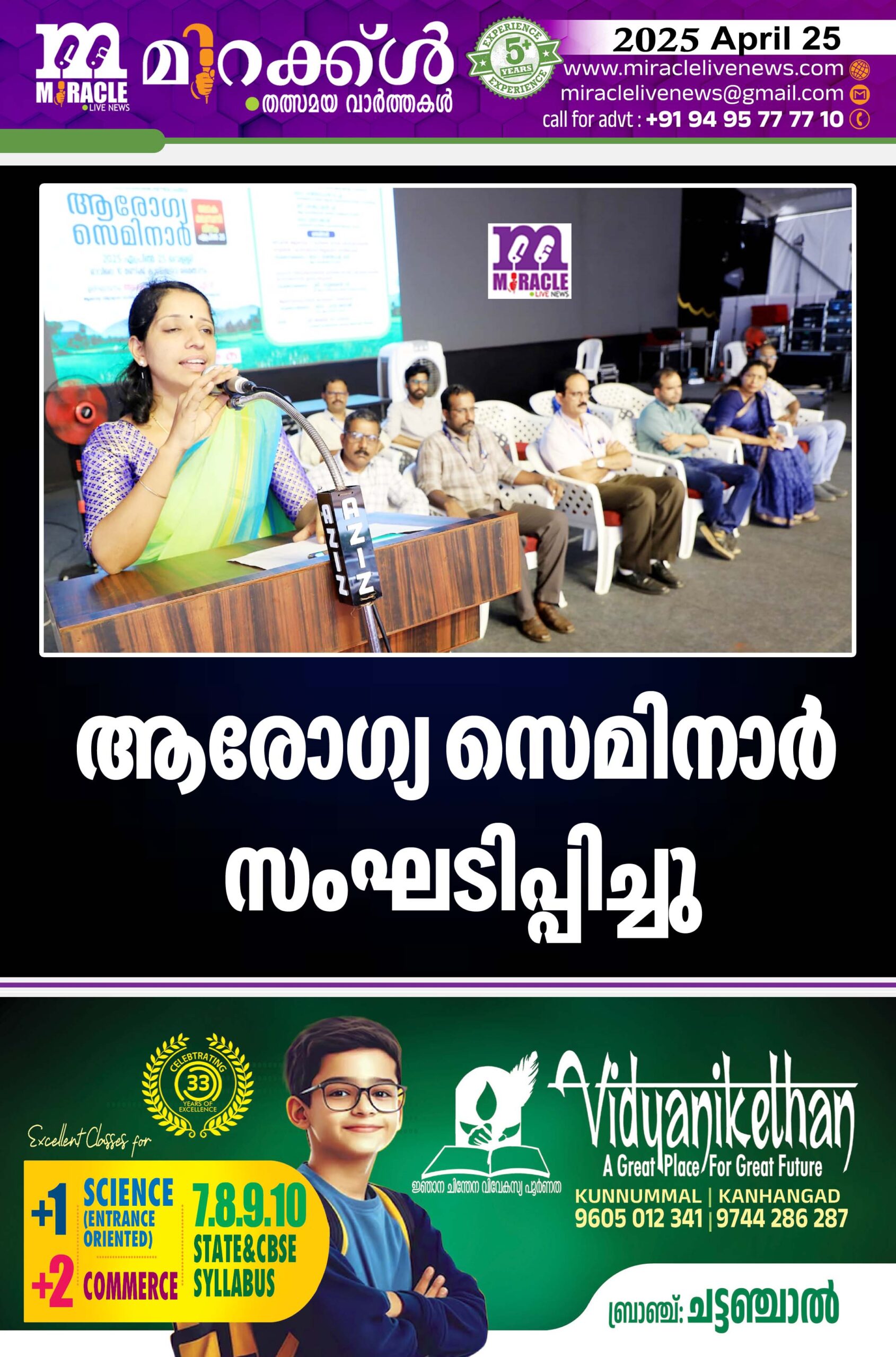 ചെറുവത്തൂര് : രണ്ടാം പിണറായി വിജയന് സര്ക്കാരിന്റെ നാലാം വാര്ഷികം, ലോക മലമ്പനി ദിനചാരണം എന്നിവയോടനുബന്ധിച്ചു ആരോഗ്യ സെമിനാര് സംഘടിപ്പിച്ചു.കാസര്ഗോഡ് ജില്ലാ മെഡിക്കല് ഓഫീസ് (ആരോഗ്യം ) ദേശീയ ആരോഗ്യ ദൗത്യം എന്നിവയുടെ സംയുക്താഭിമുഖ്യത്തില് കാലിക്കടവ് മൈതാനിയിലെ ഓഡിറ്റോറിയത്തില് വെച്ച് സംഘടിപ്പിച്ച പരിപാടിയുടെ ഉദ്ഘാടനം