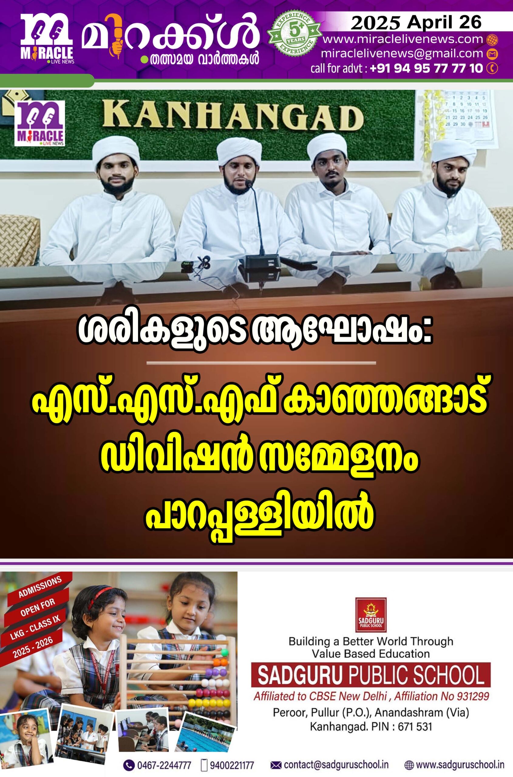 ശരികളുടെ ആഘോഷം: എസ്.എസ്.എഫ് കാഞ്ഞങ്ങാട് ഡിവിഷന് സമ്മേളനം പാറപ്പള്ളിയില്