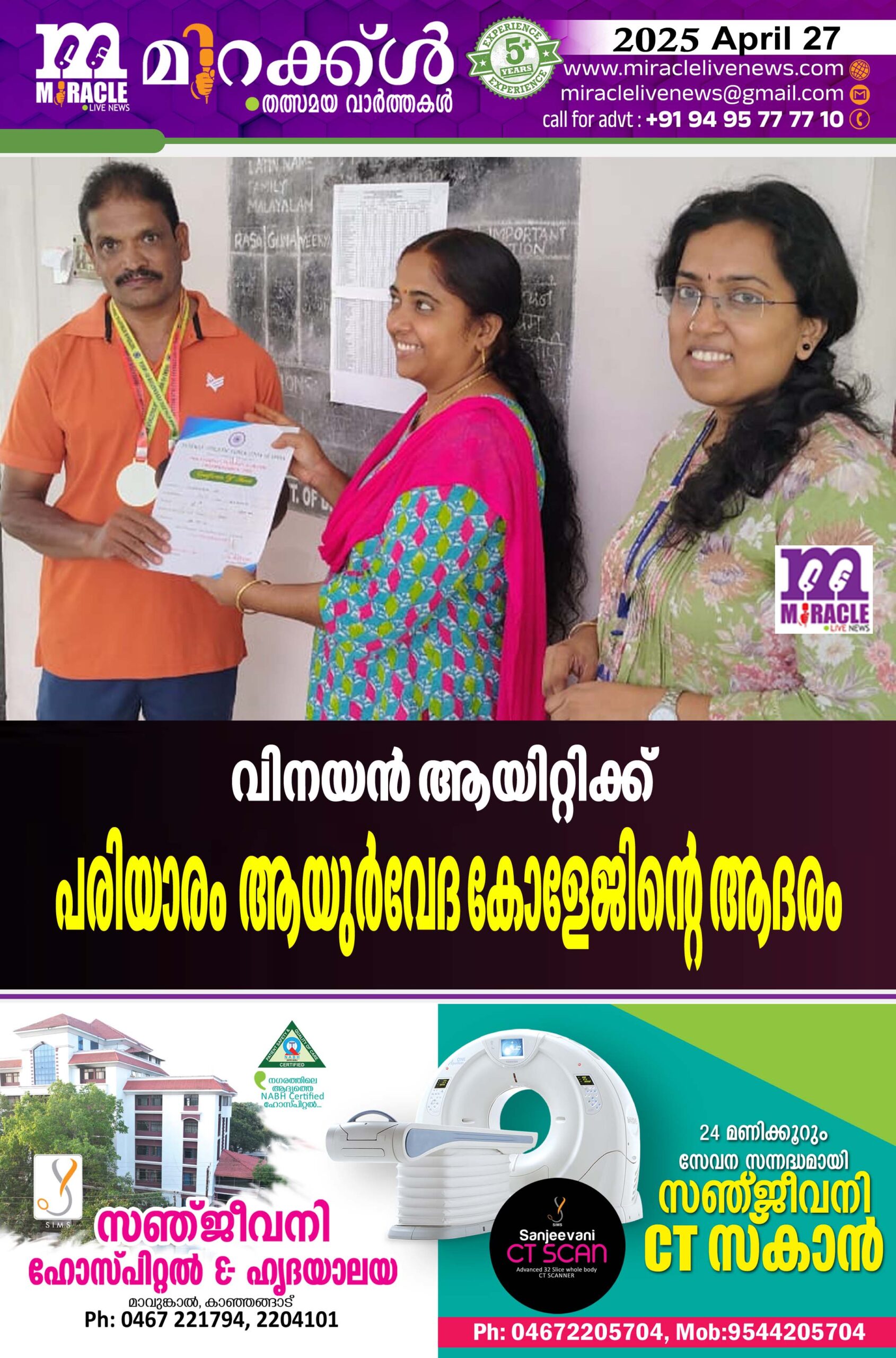 പരിയാരം ആയുര്വേദ കോളേജിന്റെ ആദരം.