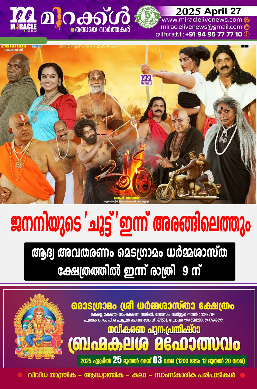 ജനനിയുടെ ‘ചൂട്ട് ‘ ഇന്ന് അരങ്ങിലെത്തും; ആദ്യ അവതരണം മൊടഗ്രാമം ധര്‍മ്മശാസ്ത ക്ഷേത്രത്തില്‍ ഇന്ന് രാത്രി 9 ന്