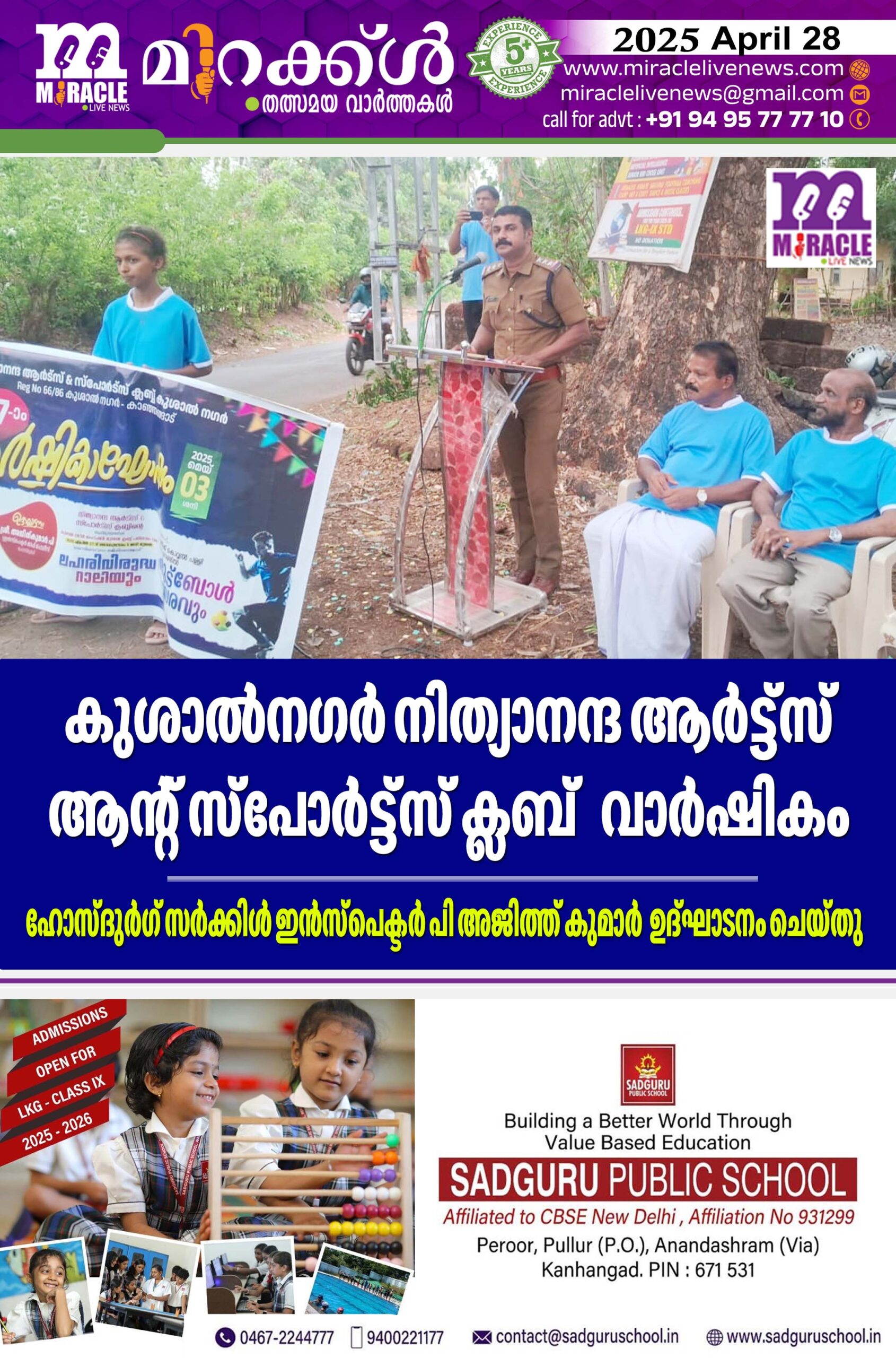 കുശാല്നഗര് നിത്യാനന്ദ ആര്ട്ട്സ് ആന്റ് സ്പോര്ട്ട്സ് ക്ലബ് വാര്ഷികം; ഹോസ്ദുര്ഗ് സര്ക്കിള് ഇന്സ്പെക്ടര് പി. അജിത്ത്കുമാര് ഉദ്ഘാടനം ചെയ്തു
