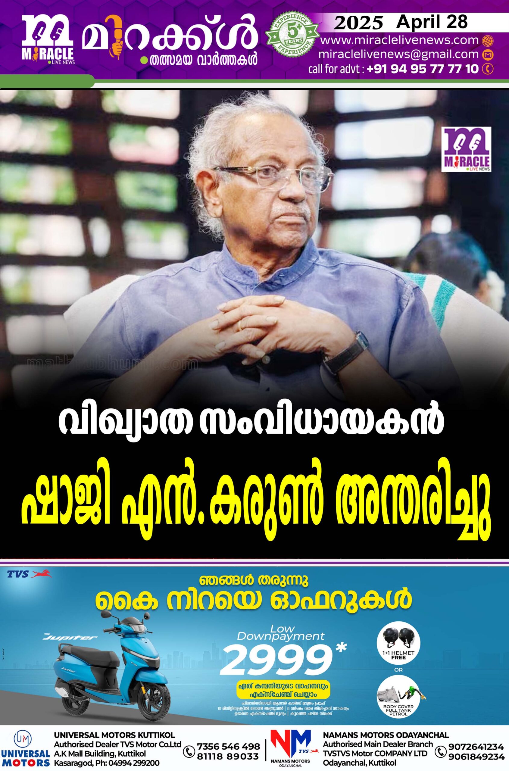 വിഖ്യാത സംവിധായകന്‍ ഷാജി എന്‍.കരുണ്‍ അന്തരിച്ചു