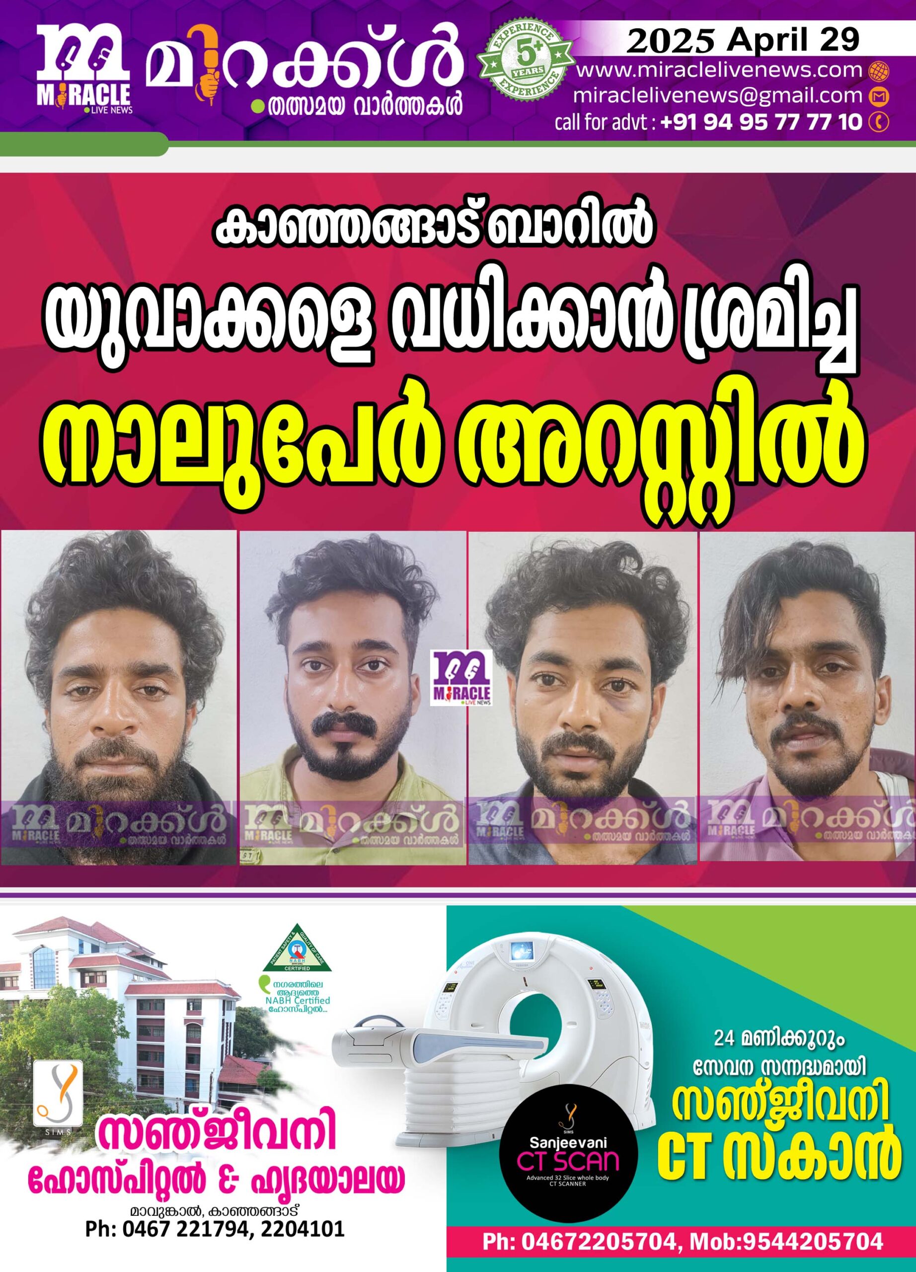 കാഞ്ഞങ്ങാട് ബാറില്‍ യുവാക്കളെ വധിക്കാന്‍ ശ്രമിച്ച നാലുപേര്‍ അറസ്റ്റില്‍