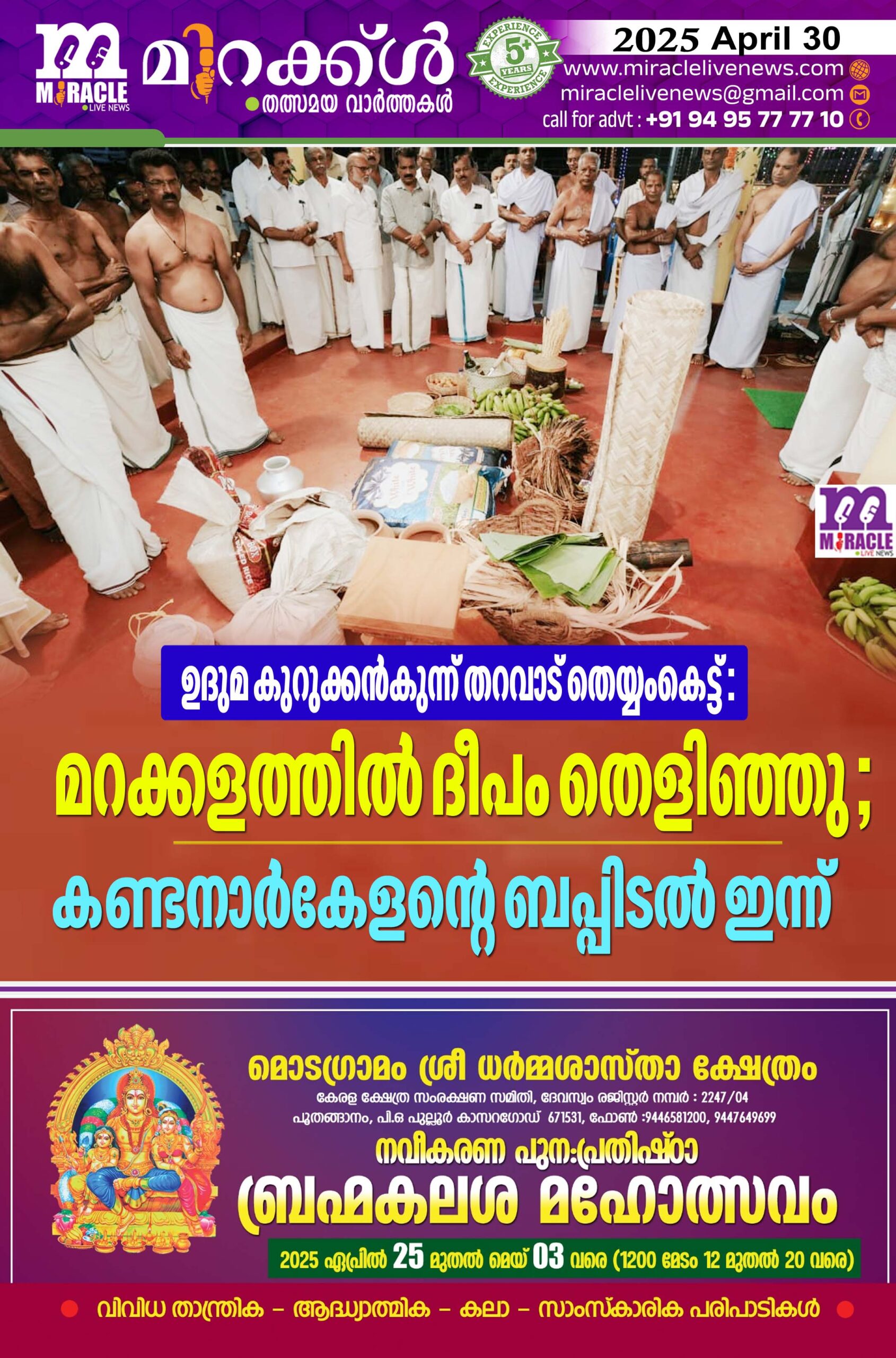 ഉദുമ : പാലക്കുന്ന് കഴകം ഉദുമ കുറുക്കന്കുന്ന് വയനാട്ടുകുലവന് തറവാട്ടില് തെയ്യംകെട്ടിന് കലവറ നിറയ്ക്കലോടെ സമാരംഭം കുറിച്ചു. രാവിലെ തിരുമുറ്റത്ത് കലശാട്ട് കര്മങ്ങള് പൂര്ത്തിയാക്കി തറവാട്ടില് നിന്നുള്ള കന്നികലവറയാണ് ആദ്യം നിറച്ചത്. തുടര്ന്ന് തറവാട് നിലകൊള്ളുന്ന വടക്കേക്കര പ്രാദേശിക സമിതി, കോതോറമ്പന് തറവാട് ചൂളിയാര് ഭഗവതി ക്ഷേത്രം, കളനാട് തെക്കേക്കര, ഒന്നാം കിഴക്കേക്കര, പടിഞ്ഞാര്ക്കര, ബേവൂരി പ്രദേശിക സമിതികളില് നിന്നും സമീപ തറവാടുകളില് നിന്നും പ്രദേശങ്ങളില് നിന്നും ഭക്ഷണ മൊരുക്കാനുള്ള വിഭവങ്ങളുമായി കലവറ ഘോഷയാത്രകള് തറവാട്ടിലെത്തി. സ്വന്തമായി വിളയിച്ചെടുത്ത പച്ചക്കറികള്ക്ക് പുറമെയാണിതെല്ലാം. രാത്രി മറക്കളത്തില് ദീപം തെളിയിച്ചു. തുടര്ന്ന് തോറ്റം പാട്ടിന് ശേഷം പാലക്കുന്ന് കഴകം ക്ഷേത്ര ആചാര സ്ഥാനികര് കോലധാരികളെ പ്രഖ്യാപിച്ചു. കണ്ടനാര് കേളന് ജിജു മോഹനന് കൊളത്തൂരും വയനാട്ടുകുലവന് ജയന് കുറ്റിക്കോലും കെട്ടിയാടും. തറവാട് ധര്മദൈവങ്ങളുടെ തെയ്യംകൂടലും നടന്നു.