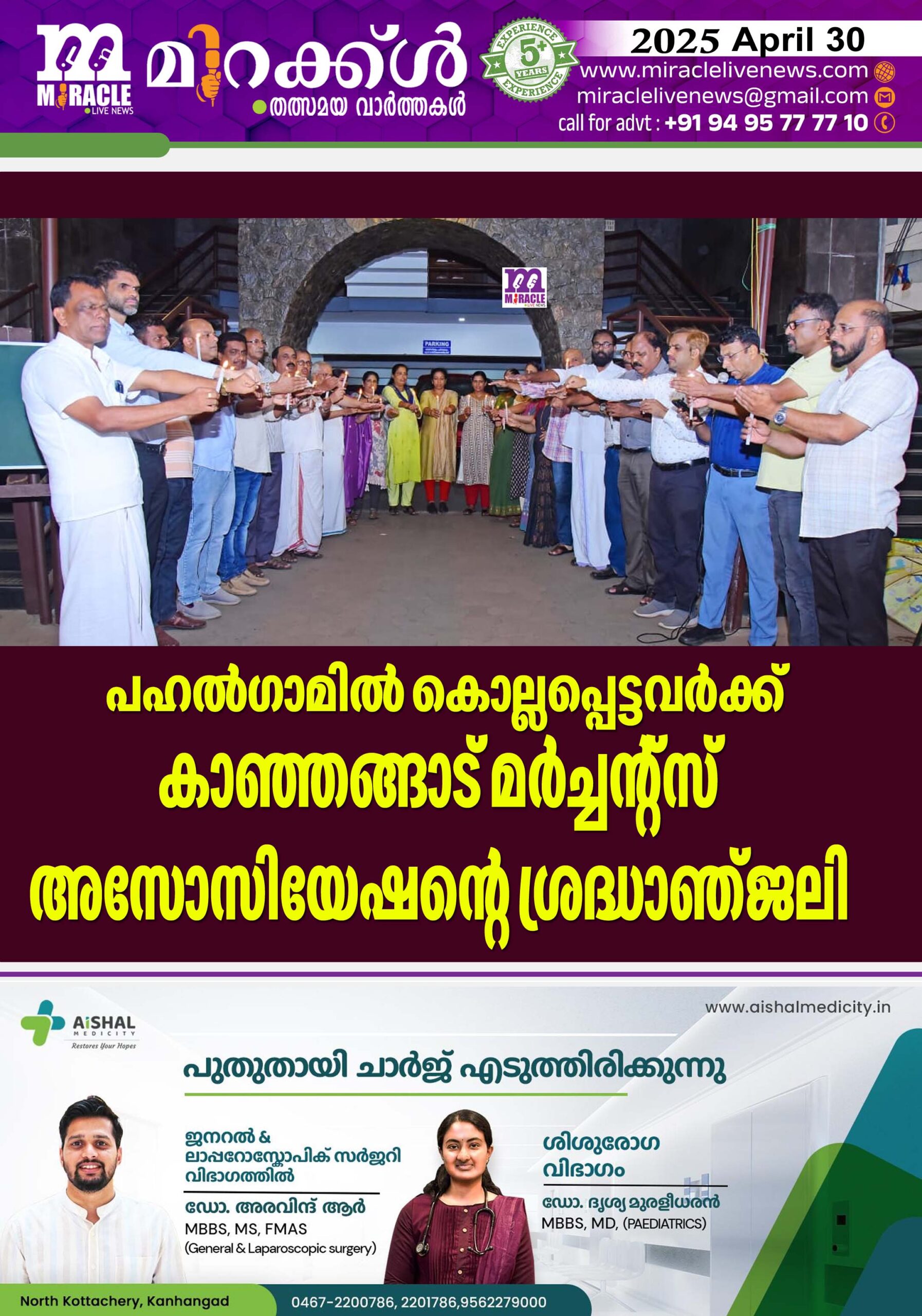 പഹല്ഗാമില് കൊല്ലപ്പെട്ടവര്ക്ക് കാഞ്ഞങ്ങാട് മര്ച്ചന്റ്സ് അസോസിയേഷന്റെ ശ്രദ്ധാഞ്ജലി