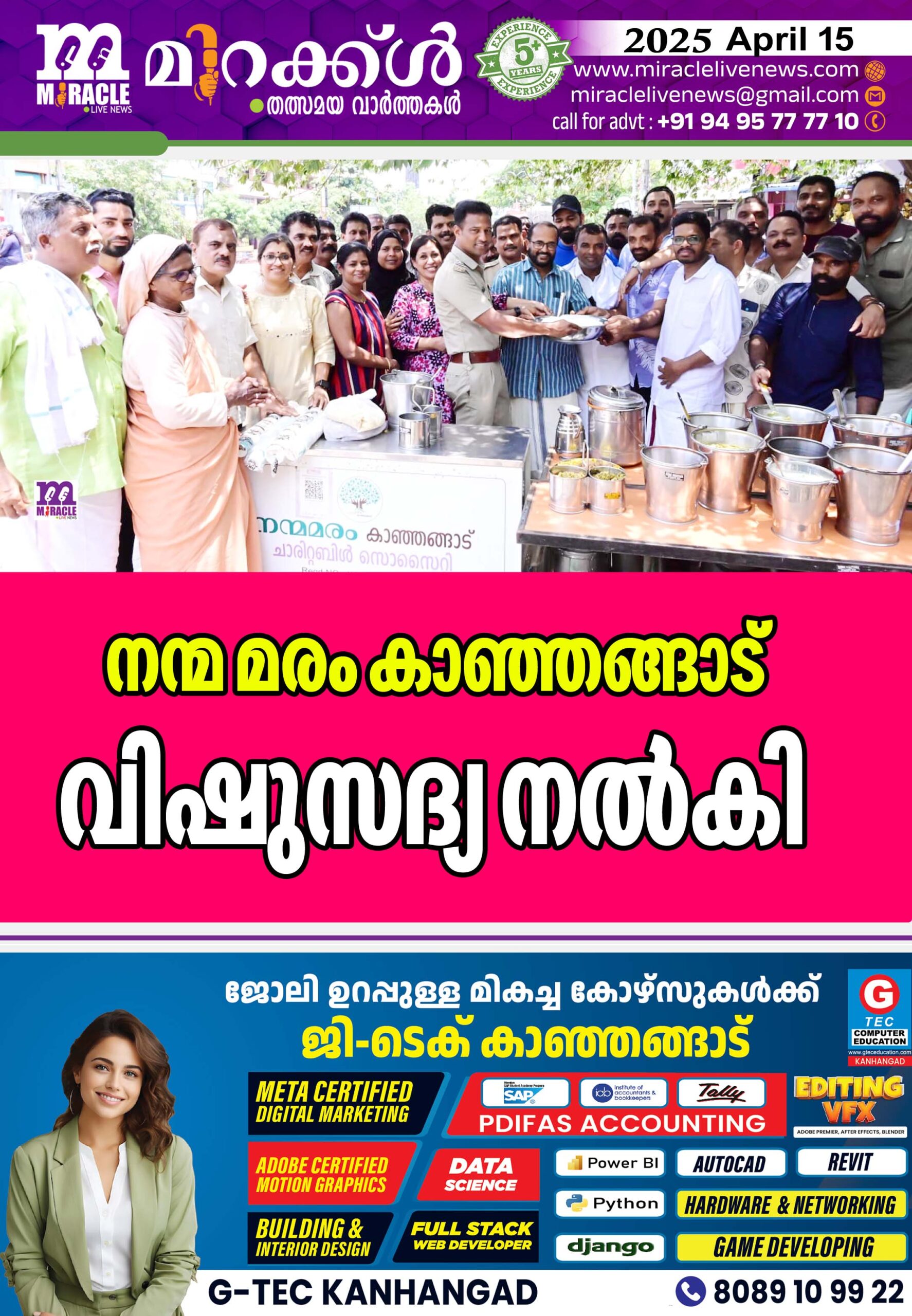 കാഞ്ഞങ്ങാട്; ഉത്സവ ദിവസങ്ങളില് വിഭവ സമൃദ്ധമായ സദ്യയും,മറ്റ് ദിവസങ്ങളില് കാഞ്ഞങ്ങാട് തെരുവോരത്ത് കഴിയുന്നവര്ക്കും,അലഞ്ഞു തിരിയുന്നവര്ക്കു,മറ്റുള്ളവര്ക്കും ആശ്വാസമായിഉച്ചഭക്ഷണം നല്കുകയും,മറ്റു സാമൂഹിക,ജീവകാരുണ്യ,ആരോഗ്യ,മേഖലയില് എല്ലാ സമയത്തും ജനകീയമായ ഇടപെടലുകള് നടത്തി മുഴുവന് ആളുകള്ക്കും ആശ്രയ കേന്ദ്രമായി കാഞ്ഞങ്ങാട് ട്രാഫിക് സര്ക്കിള് കേന്ദ്രീകരിച്ച് പ്രവര്ത്തിക്കുന്ന ആളുകളുടെ കൂട്ടായ്മയിലുള്ള നന്മ മരം കാഞ്ഞങ്ങാട് ഇത്തവണയും വിഷുദിനത്തില് തെരുവോര വിഷു സദ്യ നല്കി.തെരുവോരത്ത് കഴിയുന്ന ആളുകള്ക്കും,കാഞ്ഞങ്ങാട് പട്ടണത്തില് അലഞ്ഞു തിരിയുന്ന വര്ക്കും,സംസ്ഥാനത്തിനകത്തും പുറത്തും നിന്നു വിവിധങ്ങളായ ആവശ്യങ്ങള്ക്ക് കാഞ്ഞങ്ങാട് എത്തിയവര്ക്കും വിഷു ദിനത്തില് പായസം ഉള്പ്പെടെയുള്ളവിഭവ സമൃദ്ധമായ സദ്യ നല്കിയത്.നന്മ മരം കേന്ദ്രത്തില് ഉച്ചക്ക് 12 മണി മുതല് ആരംഭിച്ച വിഷു സദ്യ മൂന്നുമണിവരെ നീണ്ടുനിന്നു.മുന് നഗരസഭാ ചെയര്മാന് വി വി രമേശന്,കാഞ്ഞങ്ങാട് എസ് ഐ എം ടി പി സൈഫുദ്ദീന് തുടങ്ങിയവര് വിശിഷ്ട അതിഥികളായി എത്തിച്ചേര്ന്ന് ഭക്ഷണ വിതരണത്തില്പങ്കാളികളായി.