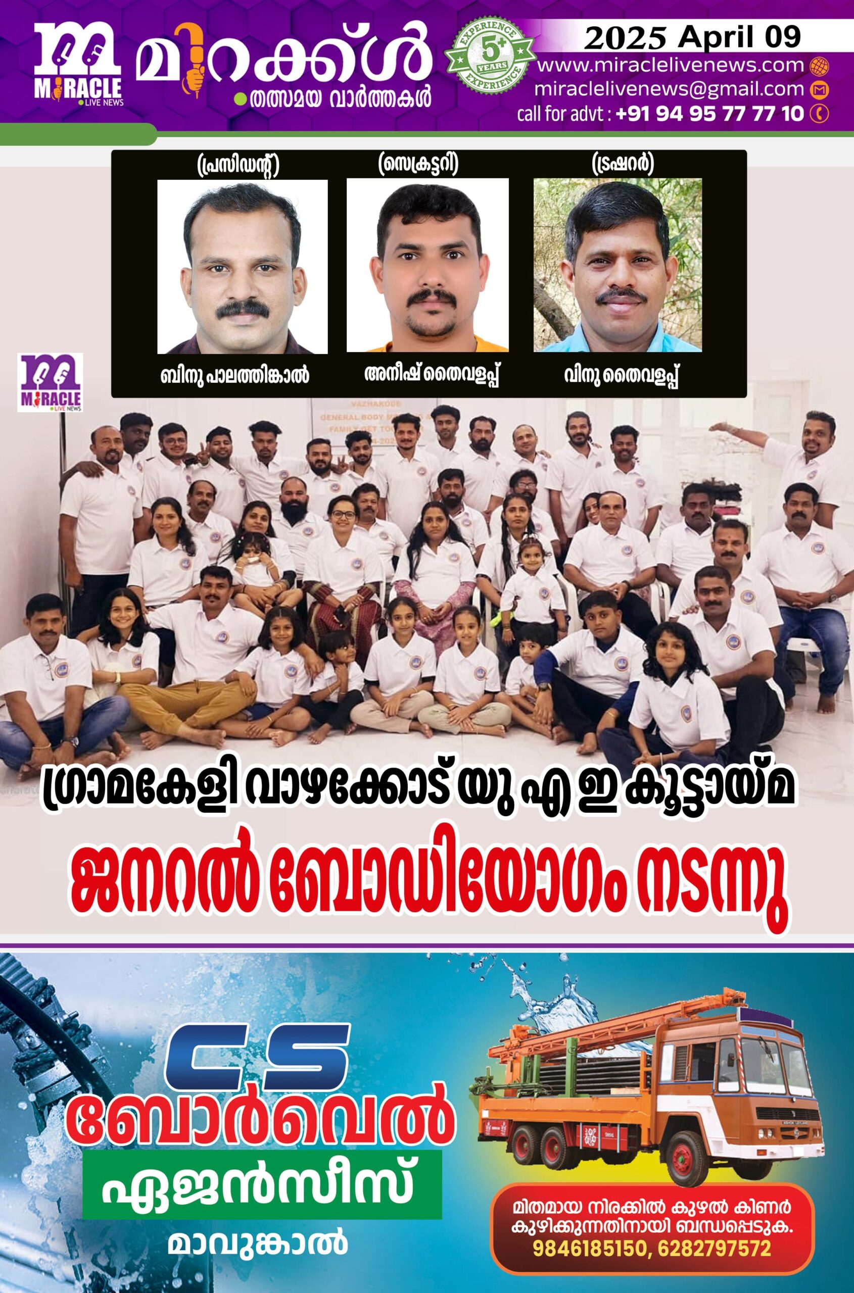 ഷാര്ജ :ഗ്രാമകേളി വാഴക്കോട് യു എ ഇ കൂട്ടായ്മയുടെ വാര്ഷിക ജനറല് ബോഡിയോഗം ഷാര്ജയില് വെച്ച് നടന്നു. 2025 വര്ഷത്തെ പുതിയ കമ്മിറ്റി ഭാരവാഹികളെ തിരഞ്ഞെടുത്തു. പുരുഷോത്തമന് കക്കട്ടില്,അഭയന് ശിവജിനഗര്, ടി വിജയന് പാലത്തിങ്കാല് (രക്ഷാധികാരികള്). ബിനു പാലത്തിങ്കാല് (പ്രസിഡന്റ ), പ്രസാദ് പാലത്തിങ്കാല് (വൈസ് പ്രസിഡന്റ്), അനീഷ് തൈവളപ്പ്