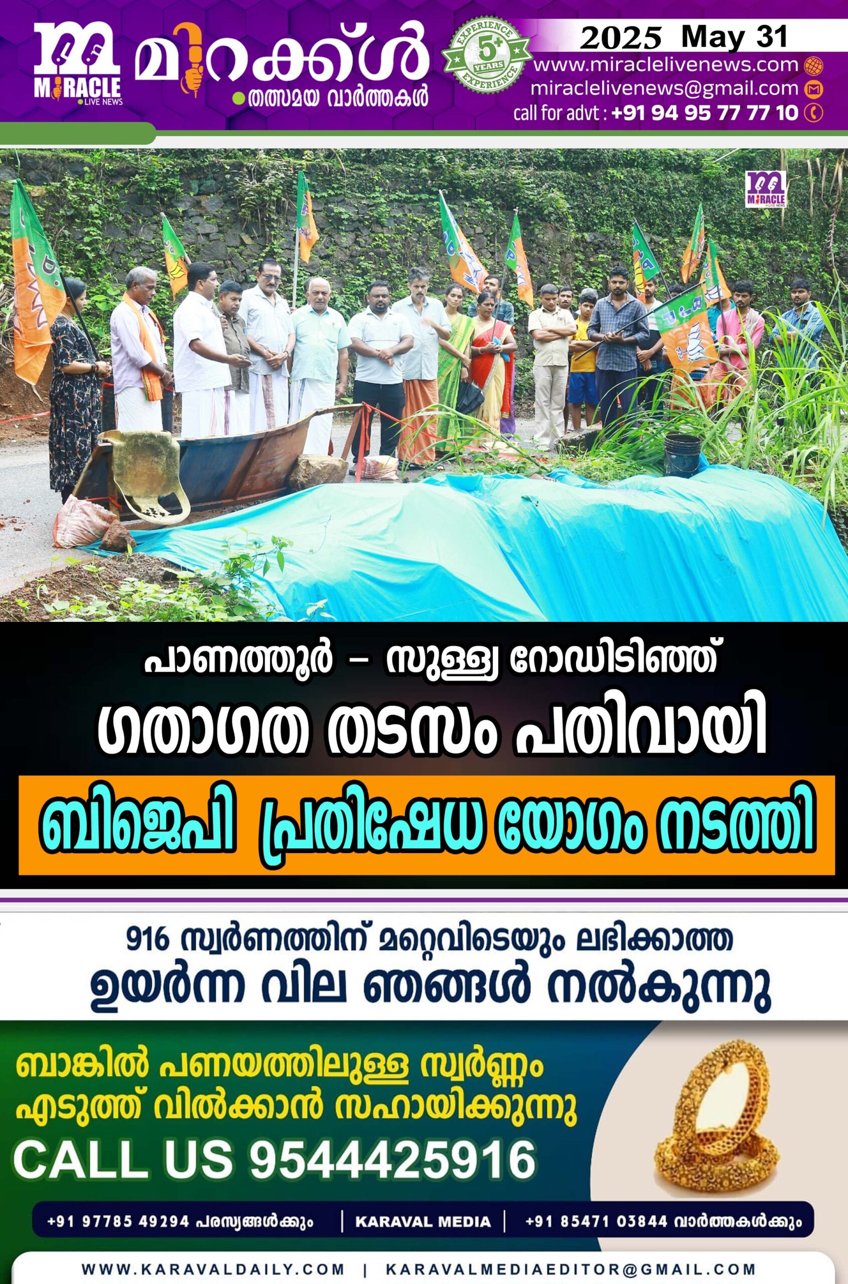പാണത്തൂര്‍ – സുള്ള്യ  റോഡിടിഞ്ഞ് ഗതാഗത തടസം പതിവായി; ബിജെപി പ്രതിഷേധ യോഗം നടത്തി