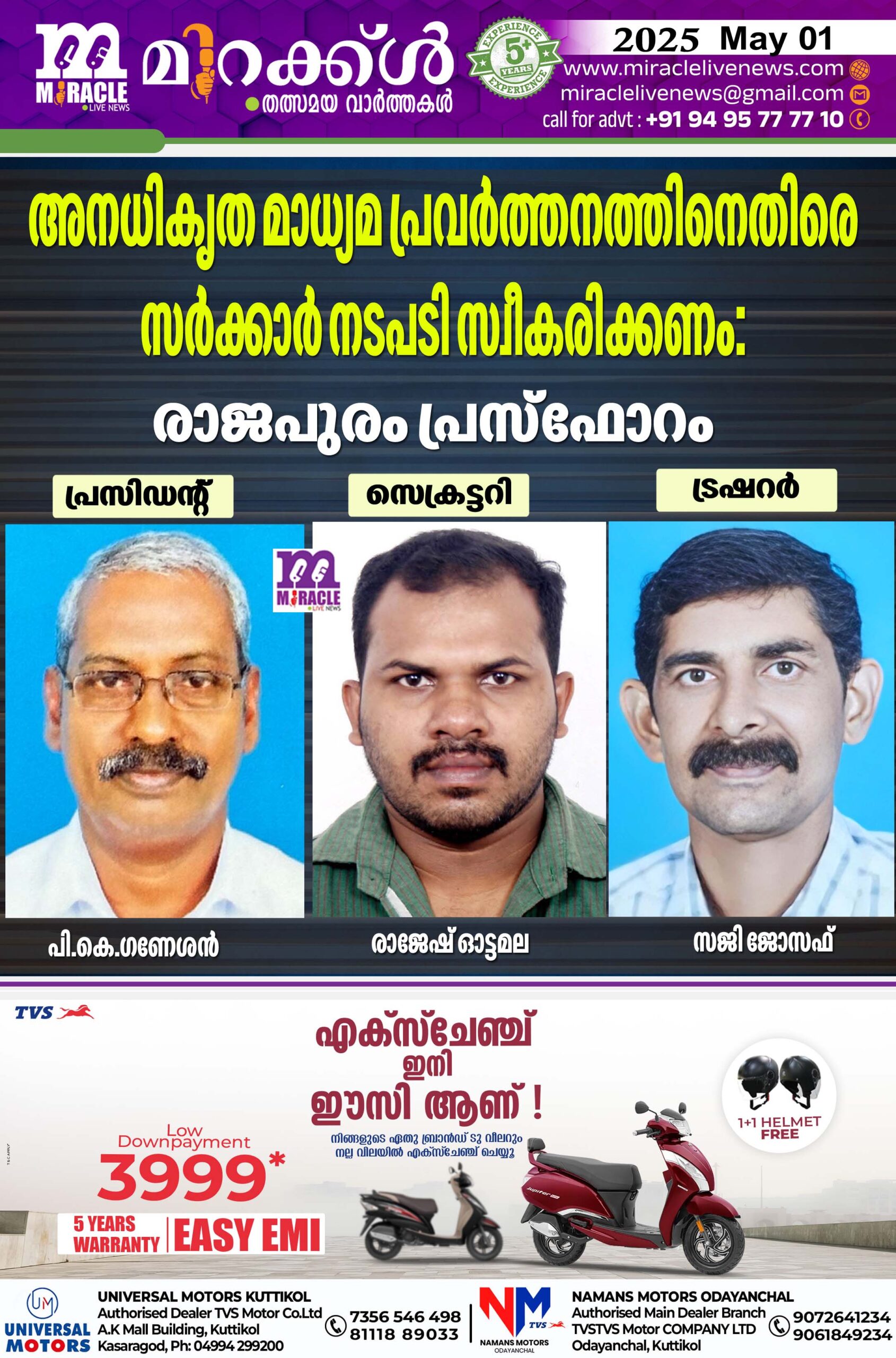 അനധികൃത മാധ്യമ പ്രവർത്തനത്തിനെതിരെ സർക്കാർ നടപടി സ്വീകരിക്കണം: രാജപുരം പ്രസ്ഫോറം