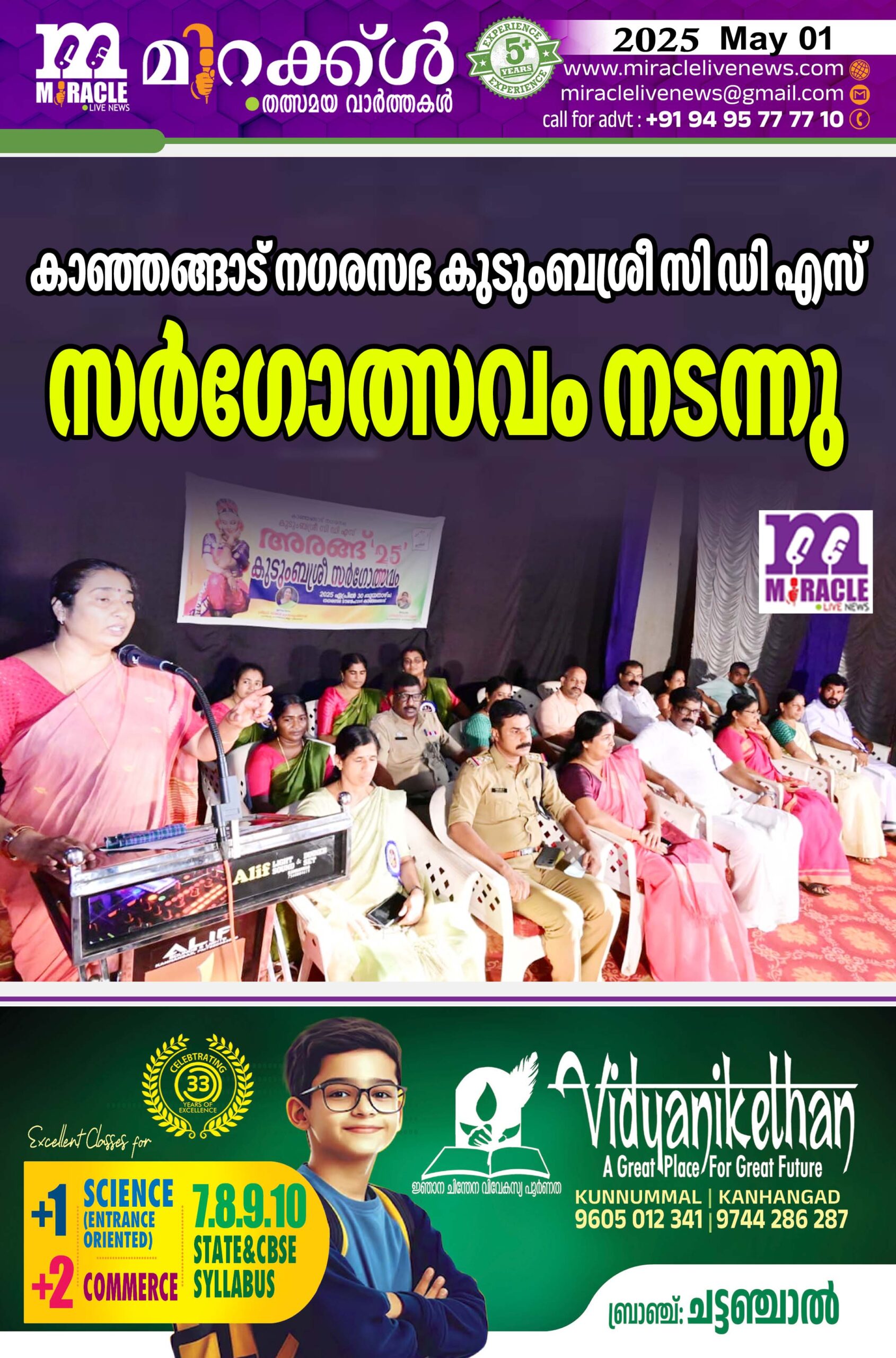 കാഞ്ഞങ്ങാട്:കാഞ്ഞങ്ങാട് നഗരസഭ ഫസ്റ്റ്,സെക്കന്ഡ് കുടുംബശ്രീ സര്ഗോത്സവം അരങ്ങ് 2025 നഗരസഭ ടൗണ്ഹാളില് നടത്തും.കുടുംബശ്രീ അംഗങ്ങളും ഓക്സിലറി ഗ്രൂപ്പ് അംഗങ്ങളും വിവിധ മത്സരങ്ങളില് പങ്കെടുത്തു.കഥ,കവിത,ചിത്രരചന,കവിതാലാപനം,മോണോ ആക്ട്,നാടന് പാട്ട്,പ്രച്ഛന്നവേഷം,തിരുവാതിര,ഒപ്പന, 18 ഇനങ്ങളിലായി 75 ആളുകള്വിവിധങ്ങളായ മത്സരങ്ങളില് പങ്കെടുത്തു.മത്സരത്തില് ഒന്നാം സ്ഥാനം നേടുന്നവര് താലൂക്ക് ജില്ലാ സംസ്ഥാന മത്സരങ്ങള്ക്ക് യോഗ്യത നേടും.