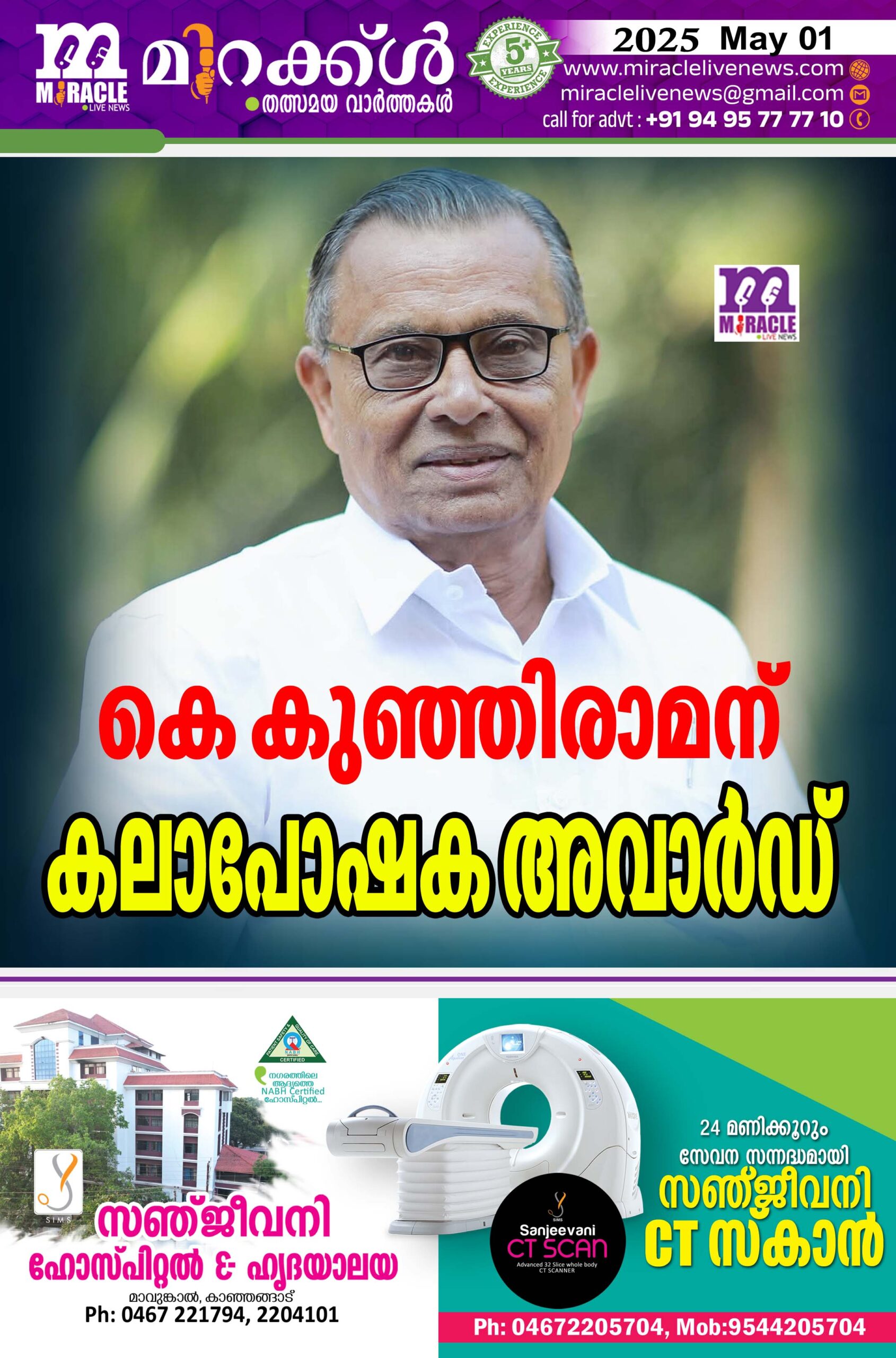 പെരിയ ഗോകുലം ഗോശാല പരമ്പര വിദ്യാപീഠത്തിന്റെ കലാ പോഷക അവാര്‍ഡിന് കേരള പുരക്കളി അക്കാദമി ചെയര്‍മാനും മുന്‍ എം എല്‍ എയുമായ കെ.കുഞ്ഞിരാമന്‍ അര്‍ഹനായി. ഗോശാലയില്‍ നടക്കുന്ന വൈശാഖ നടനം -2025 നൃത്തോത്സവത്തിന്റെ സമാപനദിനമായ 11 ന് നടക്കുന്ന ചടങ്ങില്‍ അവാര്‍ഡ് സമ്മാനിക്കുമെന്ന് പരമ്പര വിദ്യാപീഠം മാനേജിങ് ട്രസ്റ്റി വിഷ്ണു പ്രസാദ് ഹെബ്ബാര്‍ അറിയിച്ചു. വൈശാഖ നടന ദിനങ്ങളില്‍ ജില്ലയിലെ തിരഞ്ഞെടുക്കപ്പെട്ട നൃത്താധ്യാപകരായ രാമചന്ദ്രന്‍, ധന്യ രാമചന്ദ്രന്‍ ദമ്പ തികള്‍, ഡോ. വിദ്യാലക്ഷ്മി കുമ്പള, ബാലകൃഷ്ണ മഞ്ചേശ്വര്‍, ശശികല, റെജി മാര്‍ട്ടിന്‍ ജോണ്‍, രഘു, രാജു, സുരേന്ദ്രന്‍ പട്ടേന, കലാമണ്ഡലം വനജ രാജന്‍, കലാമ ണ്ഡലം അജിത എന്നിവരെ പരമ്പര വിദ്യാപീഠം ആദരിക്കും.