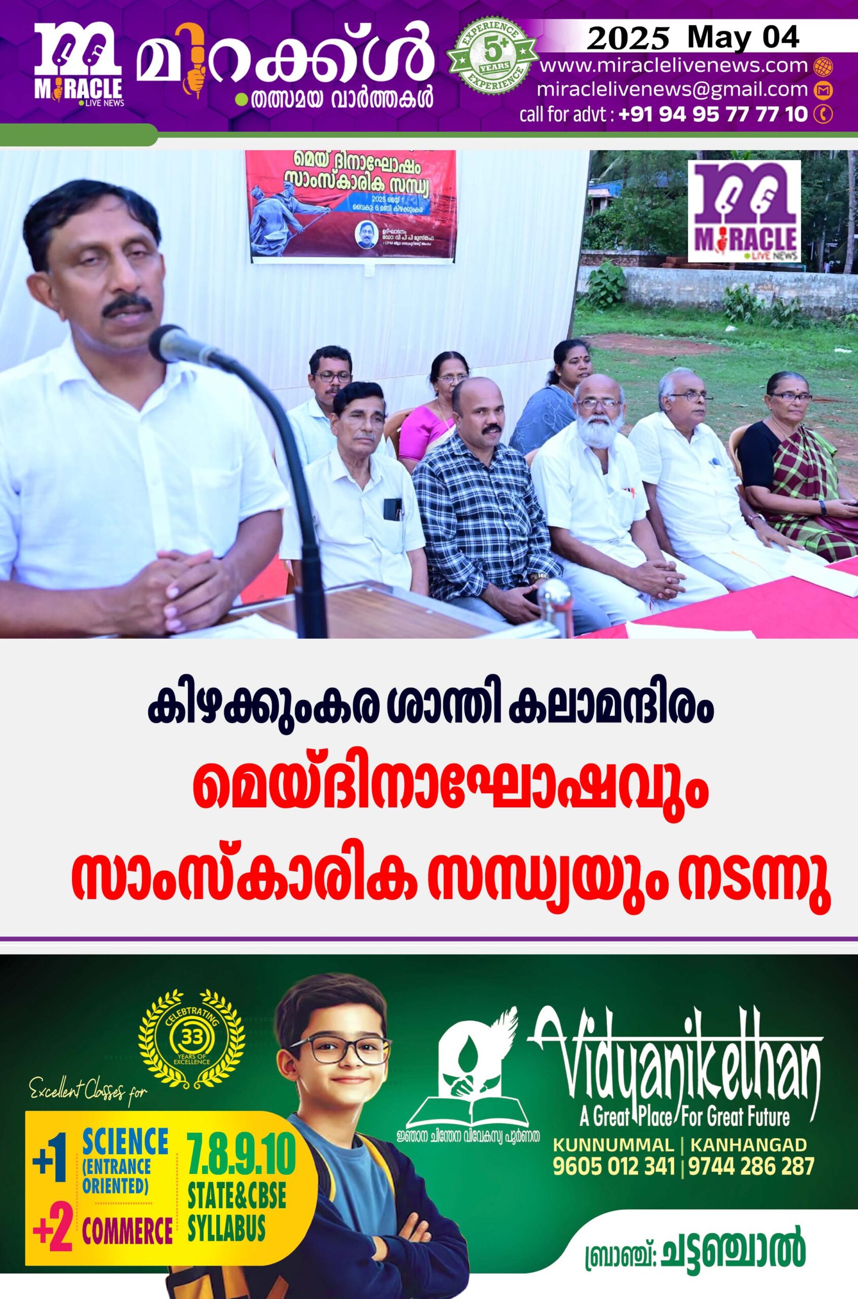 കിഴക്കുംകര ശാന്തി കലാമന്ദിരം മെയ്ദിനാഘോഷവും സാംസ്‌കാരിക സന്ധ്യയും നടന്നു