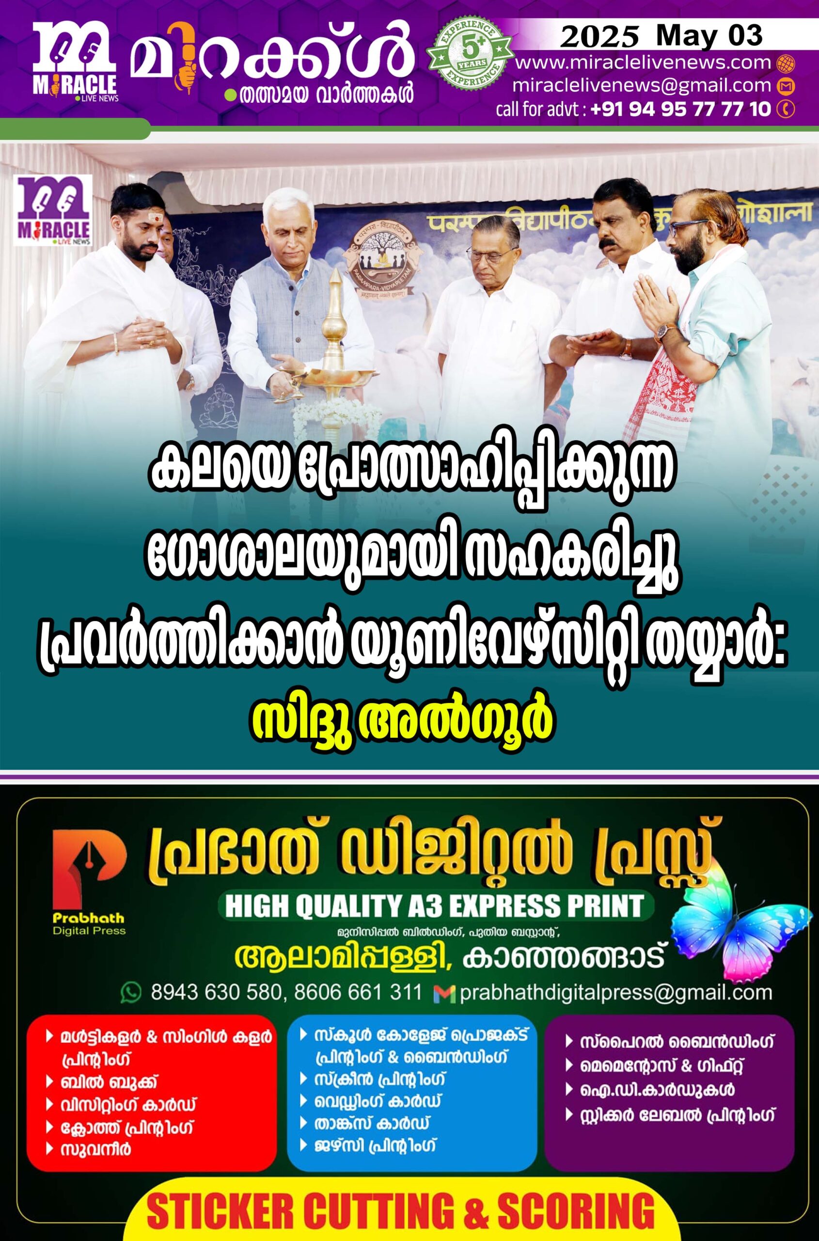 കലയെ പ്രോത്സാഹിപ്പിക്കുന്ന ഗോശാലയുമായി സഹകരിച്ചു പ്രവര്ത്തിക്കാന് യൂണിവേഴ്സിറ്റി തയ്യാര് :സിദ്ദു അല്ഗൂര്