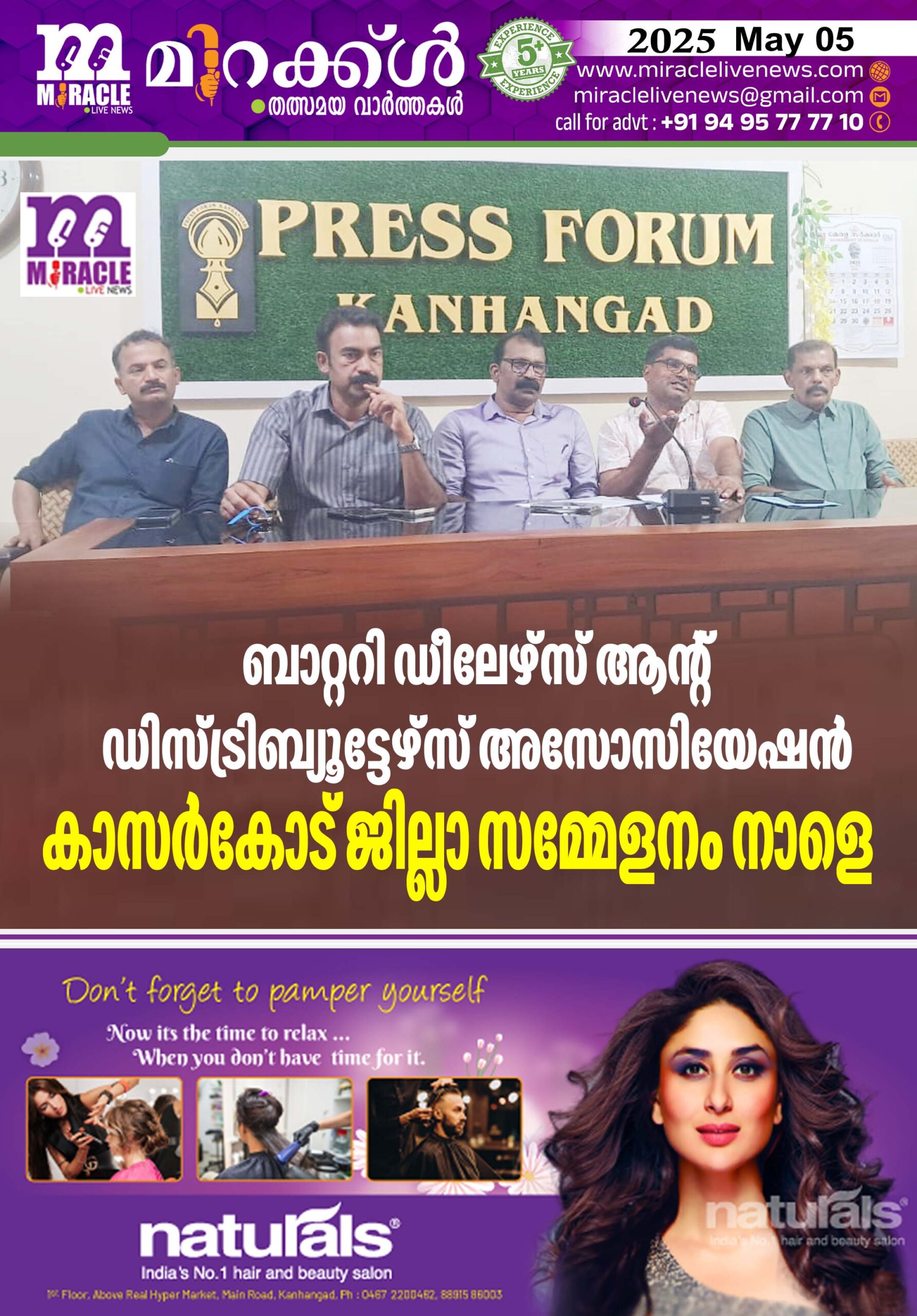 കാഞ്ഞങ്ങാട് :ബാറ്ററി ഡീലേഴ്സ് ആന്റ് ഡിസ്ട്രിബ്യൂട്ടേഴ്സ് അസോസിയേഷന് കാസര്കോട് ജില്ലാ സമ്മേളനം മെയ് 6 ന് കാഞ്ഞങ്ങാട് വ്യാപാരം നടക്കുമെന്ന് ഭാരവാഹികള് വാര്ത്ത അറിയിച്ചു. രാവിലെ 8.30 ന് പതാക ഉയര്ത്തല്. 9 ന് നടക്കുന്ന പ്രതിനിധി സമ്മേളനം സംസ്ഥാന ജനറല് സെക്രട്ടറി അന്വര് ഖാന് ഉദ്ഘാടനം ചെയ്യും. ജില്ലാ പ്രസിഡന്റ് കെ വി ദിനേശന് അധ്യക്ഷനാവും സെക്രട്ടറി കെ വി ശശികുമാര് റിപ്പോര്ട്ട് അവതരണവും