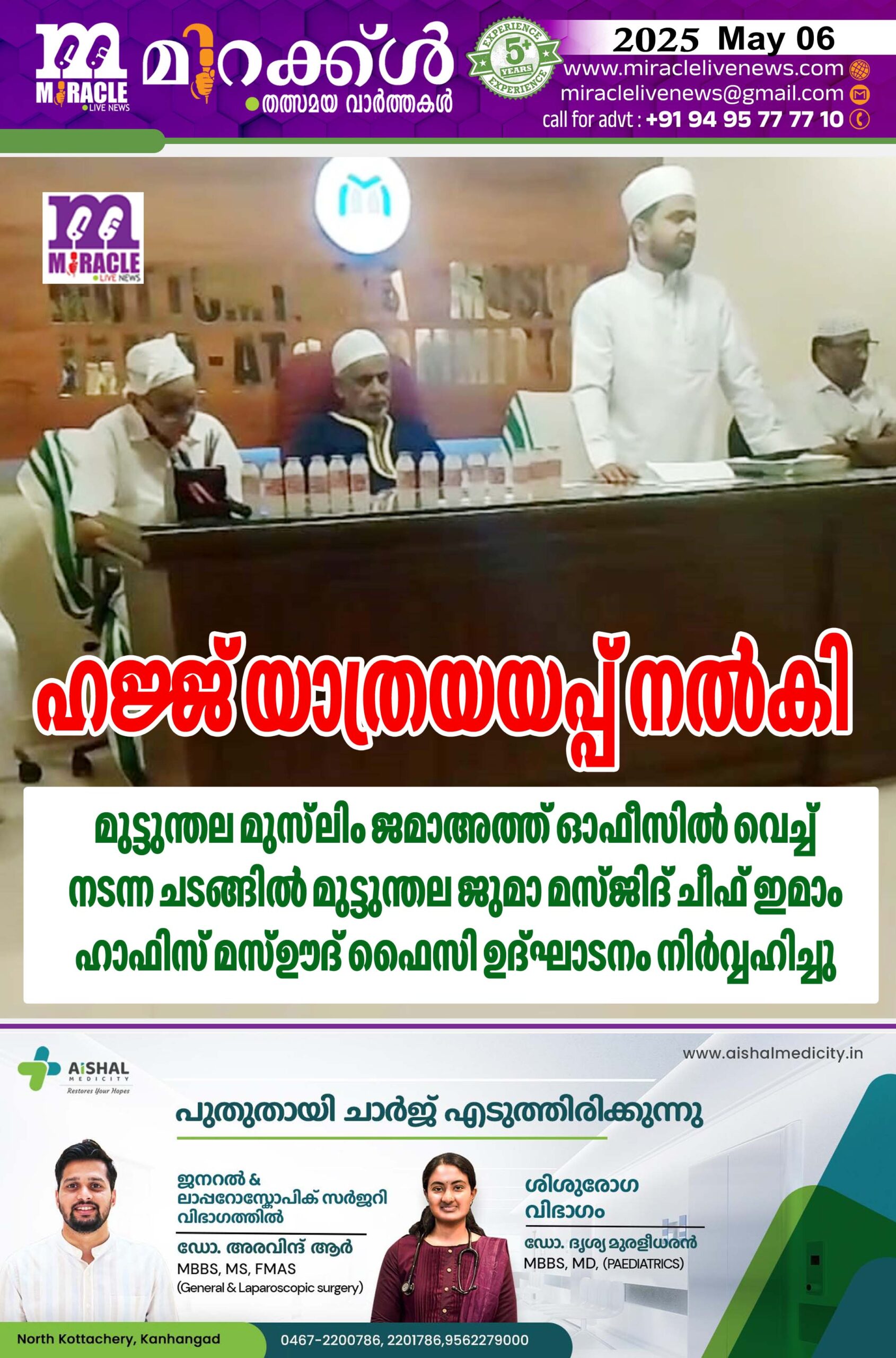 ഹജ്ജ് യാത്രയയപ്പ് നല്കി; മുട്ടുന്തല മുസ്ലിം ജമാഅത്ത് ഓഫീസില് വെച്ച് നടന്ന ചടങ്ങില് മുട്ടുന്തല ജുമാ മസ്ജിദ് ചീഫ് ഇമാം ഹാഫിസ് മസ്ഊദ് ഫൈസി ഉദ്ഘാടനം നിര്വ്വഹിച്ചു