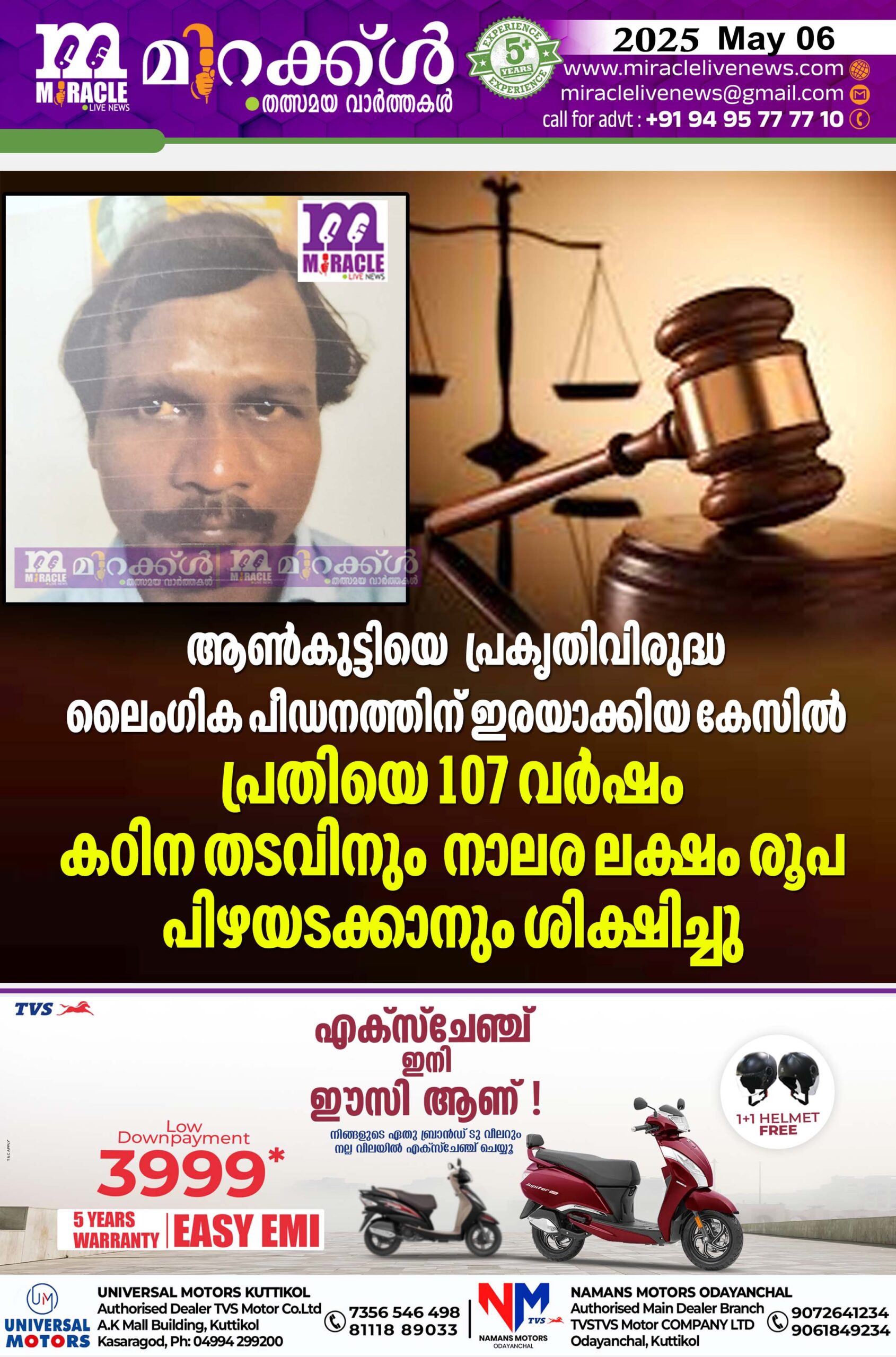 ആണ്കുട്ടിയെ പ്രകൃതിവിരുദ്ധ ലൈംഗിക പീഡനത്തിന് ഇരയാക്കിയ കേസില് പ്രതിയെ 107 വര്ഷം കഠിന തടവിനും നാലര ലക്ഷം രൂപ പിഴയടക്കാനും ശിക്ഷിച്ചു