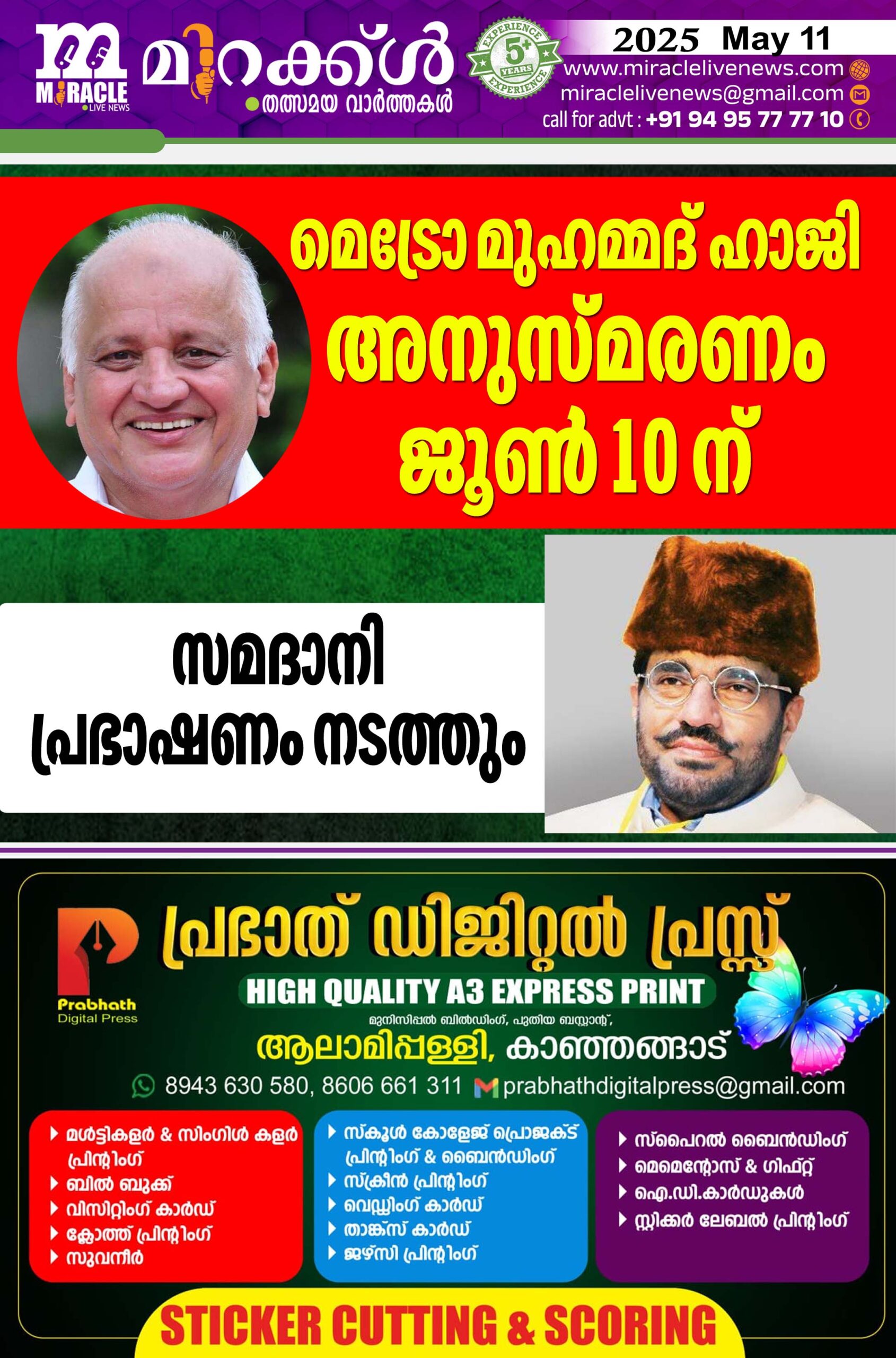 മെട്രോ മുഹമ്മദ് ഹാജി അനുസ്മരണം ജൂണ് 10 ന്; സമദാനി പ്രഭാഷണം നടത്തും