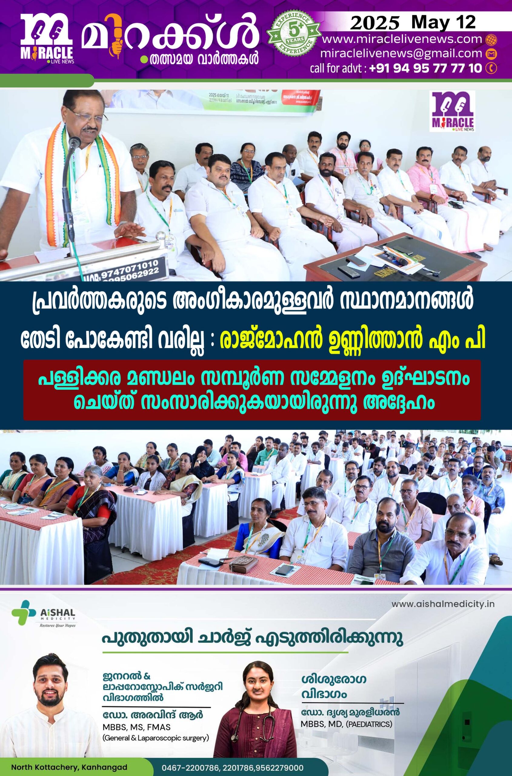 പള്ളിക്കര; പ്രവര്ത്തകരുടെ അംഗീകാരമുള്ളവര് സ്ഥാനമാനങ്ങള് തേടി പോകേണ്ടി വരില്ലെന്നും സ്ഥാനമാനങ്ങള് ഇവരെ തേടിയെത്തുമെന്നും രാജ്മോഹന് ഉണ്ണിത്താന് എം പി ഇന്ത്യന് നാഷണല് കോണ്ഗ്രസ് പള്ളിക്കര മണ്ഡലം സമ്പൂര്ണ സമ്മേളനം ഉദ്ഘാടനം ചെയ്ത് സംസാരിക്കുകയായിരുന്നു അദ്ദേഹം.