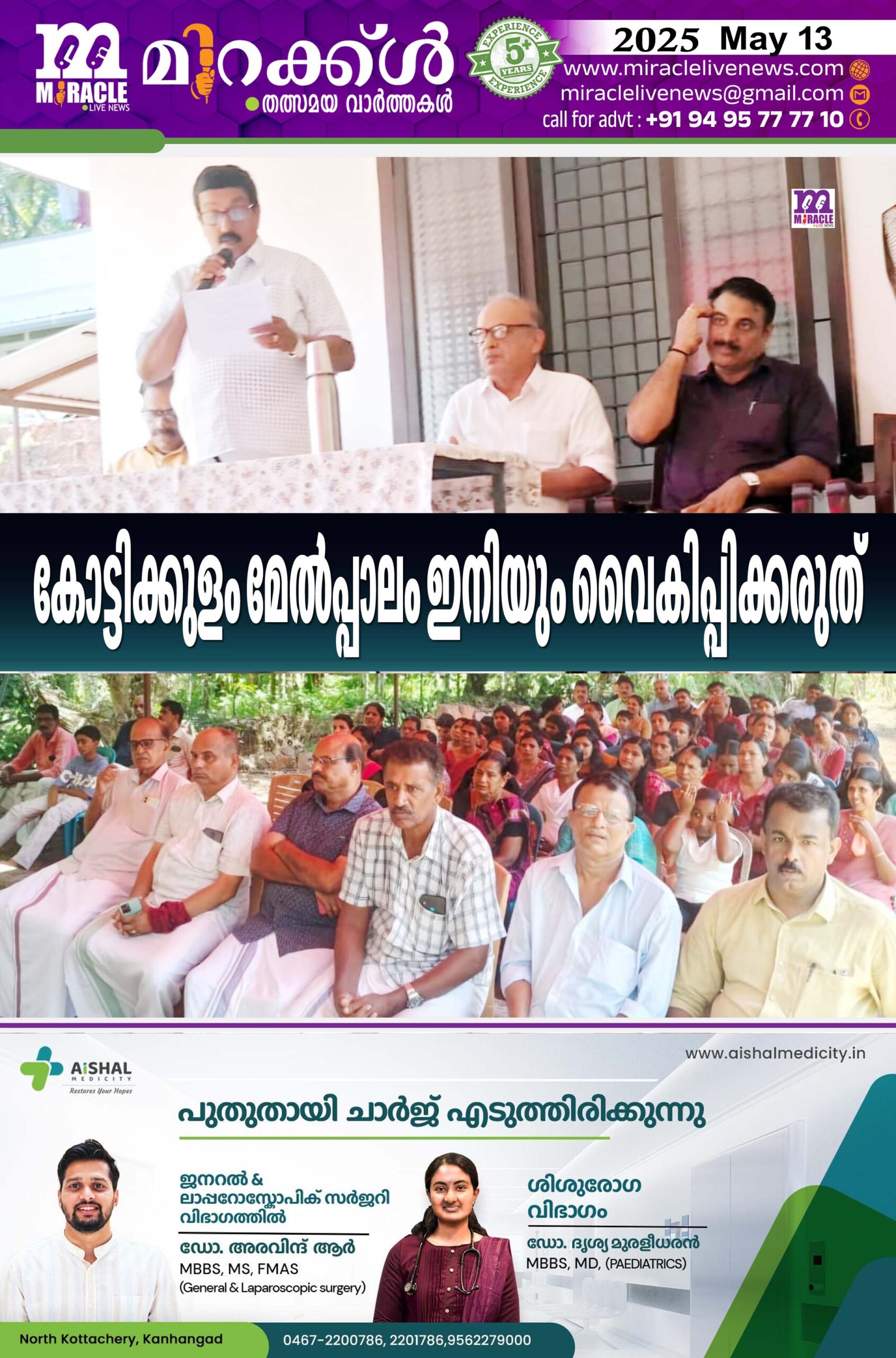 പാലക്കുന്ന്: രണ്ട് പതിറ്റാണ്ടിലേറെയായി കാത്തിരിപ്പ് തുടരുന്ന കോട്ടിക്കുളം മേല്പ്പാല നിര്മ്മാണംഇനിയും വൈകിപ്പിക്കരുതെന്ന് എരോല് എന്. എസ്. എസ്. കരയോഗം വാര്ഷിക ജനറല് ബോഡിയോഗം ബന്ധപ്പെട്ടവരോട് അപേക്ഷിച്ചു. സമൂഹത്തില് വര്ദ്ധിച്ചുവരുന്ന മയക്കുമരുന്ന് വ്യാപനം തടയുവാന് ശക്തമായ നിയമനടപടികള് കൈകൊള്ളണമെന്ന് ആവശ്യപ്പെട്ടു . കരയോഗ ഭവനത്തില് നടന്ന കുടുംബ സംഗമം ഹോസ്ദൂര്ഗ് താലുക്ക് യൂണിയന് വൈസ് പ്രസിഡണ്ട് ശ്രീകുമാര് കോടോത്ത് ഉദ്ഘാടനം ചെയ്തു. കരയോഗം പ്രസിഡന്റ് പി. ഭാസ്ക്കരന് നായര് അദ്ധ്യക്ഷത വഹിച്ചു. സെക്രട്ടറി അഡ്വ വിദ്യാധരന് നമ്പ്യാര്, മുന് പ്രതിനിധിസഭാ മെമ്പര് അഡ്വ. പി. സതീശന് താലൂക്ക് യൂണിയന് സെക്രട്ടറി പി. ജയപ്രകാശ് എന്നിവര് പ്രസംഗിച്ചു. വിവിധ മത്സര പരീക്ഷകളിലും വിവിധ മേഖലകളില് കഴിവു തെളിയിച്ച കുട്ടികളെയും അനുമോദിച്ചു. മുന് ഭാരവാഹികളെ ആദരിച്ചു. ഭാരവാഹികള്: അഡ്വ.എ. വിദ്യാധരന് നമ്പ്യാര് (പ്രസി.), പി. രാധാകൃഷണന് നായര് (സെക്ര.), കെ. മുധുസൂദനന്നായര്(ട്രഷ.).