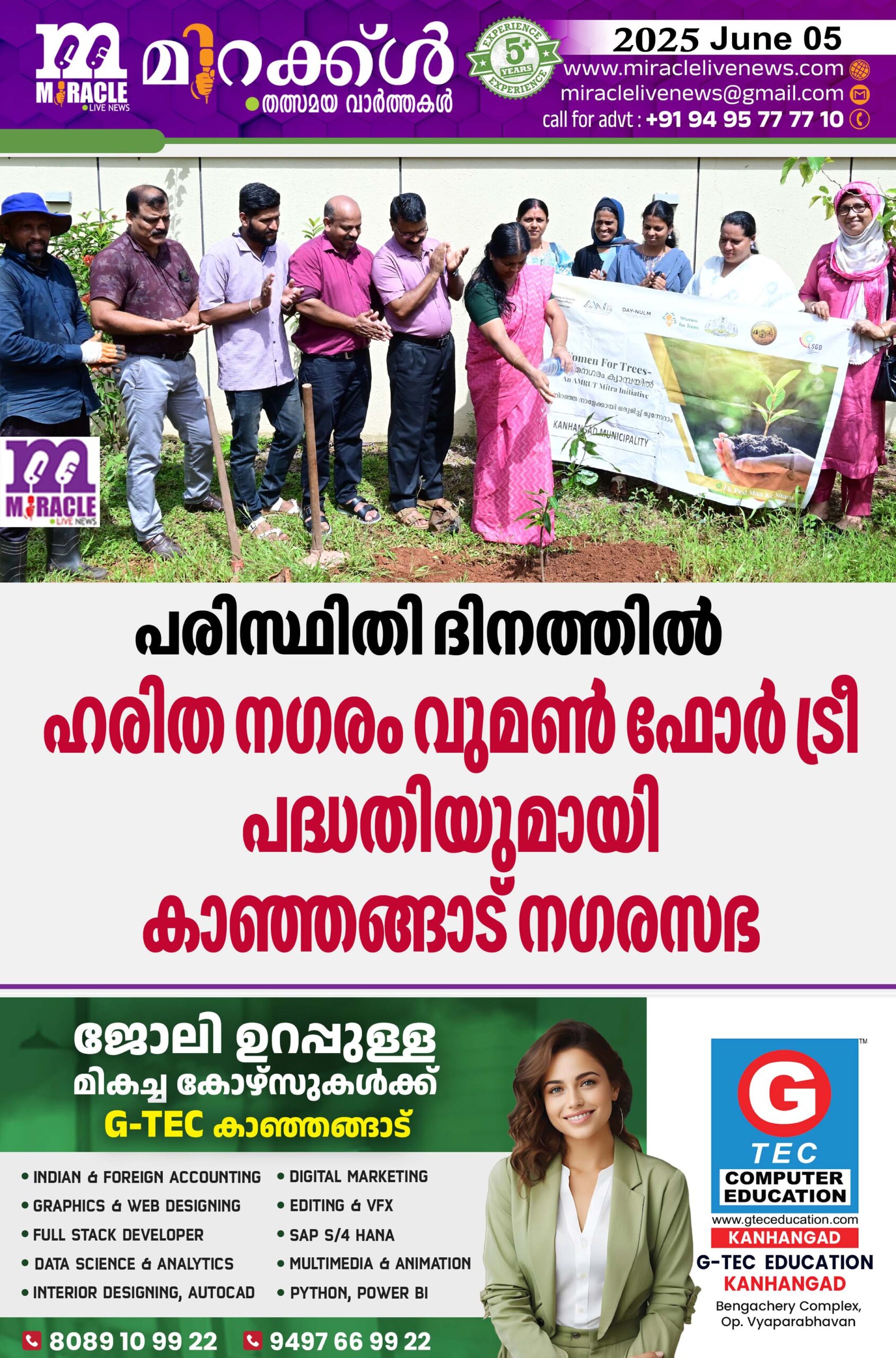 കാഞ്ഞങ്ങാട്:കാഞ്ഞങ്ങാട് നഗരസഭാ ഡേ -എന് യു എല് എം – അമര്ത്- പദ്ധതിയുടെ ഭാഗമായി നടപ്പിലാക്കുന്ന ഹരിത നഗരം (വുമണ് ഫോര് ട്രീ )പദ്ധതി വഴി വൃക്ഷ തൈകള് നടുന്ന പരിപാടിയുടെ ഉത്ഘാടനം പരിസ്ഥിതി ദിനത്തില് നടന്നു. മേളം കോട്ട് പാതയോരത്ത് നഗരസഭാ ചെയര്പേഴ്സണ് കെ. വി സുജാത ഉദ്ഘാടനം ചെയ്തു.ക്ലീന് സിറ്റി മാനേജര് ഷൈന് പി ജോസ് അധ്യക്ഷത വഹിച്ചു. കെ മനോഹരന്, പി രാകേഷ് , എന് യു എല് എം സിറ്റി മിഷന് മാനേജര് ബിനീഷ് ജോയ് , കെ രുഗ്മിണി ഇ ടി ,ശ്രീവിദ്യ ,കുടുംബശ്രീ അയല്ക്കൂട്ട അംഗങ്ങള് പങ്കെടുത്തു . പദ്ദതിയുടെ ഭാഗമായി 175 വൃക്ഷ തൈകള് നഗരസഭയുടെ വിവിധ ഭാഗങ്ങളില് നടുകയും കുടുംബശ്രീ അയല്ക്കൂട്ട അംഗങ്ങള് പരിപാലിക്കുകയും ചെയ്ത് പരിസ്ഥിതി നഗരമാക്കുക എന്നതാണ് പദ്ധതിയിലൂടെ ലക്ഷ്യമിടുന്നത്